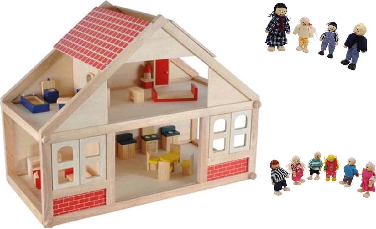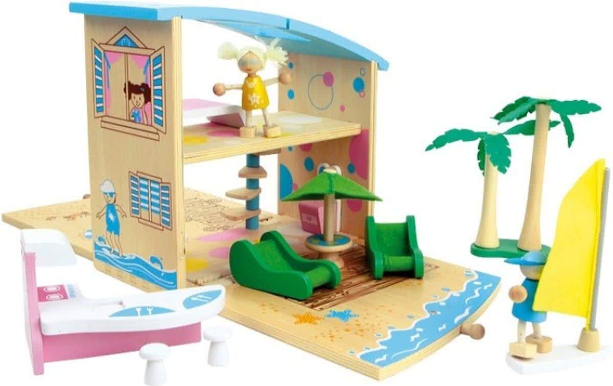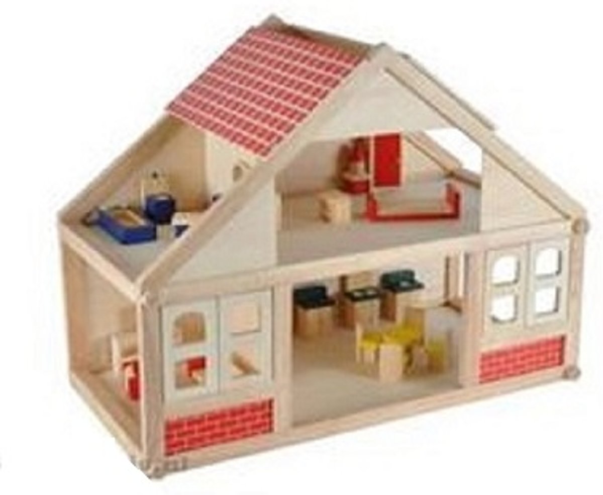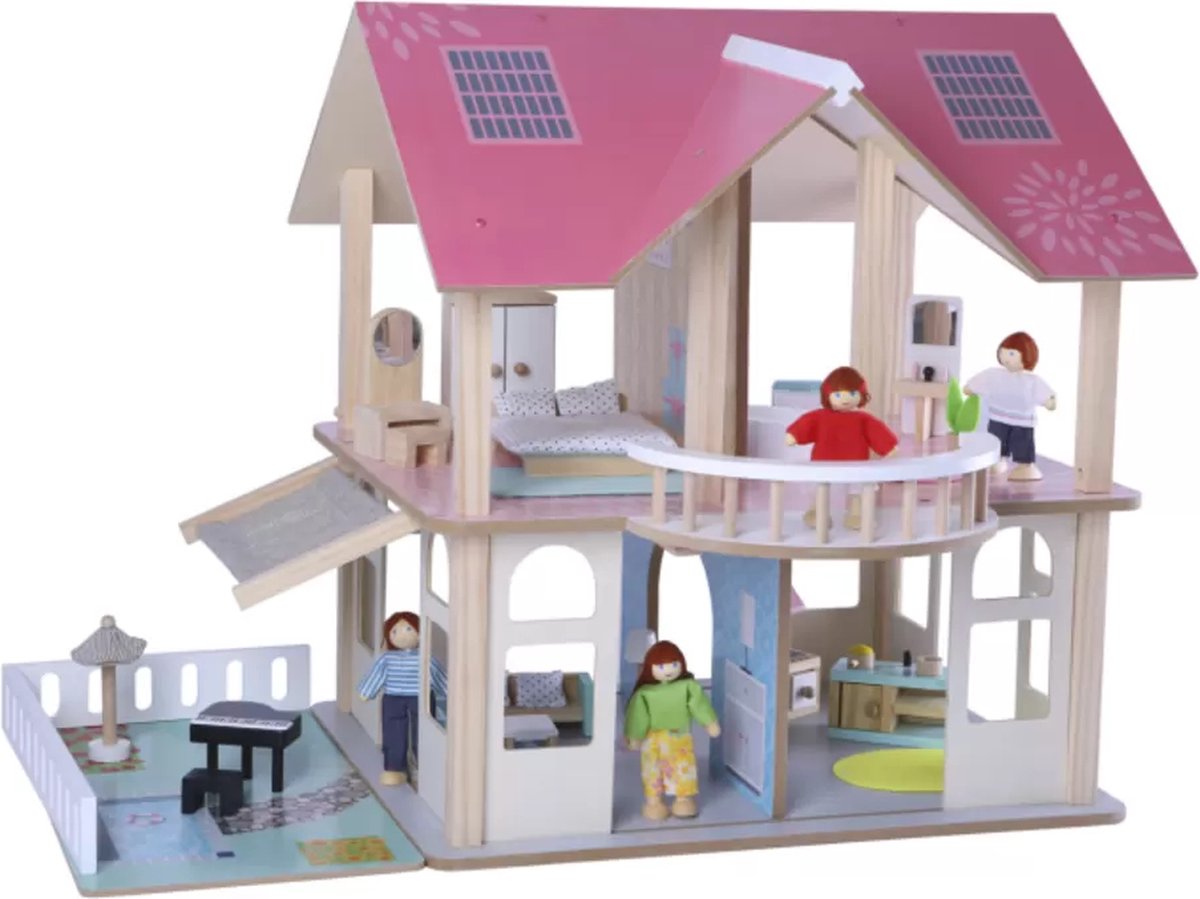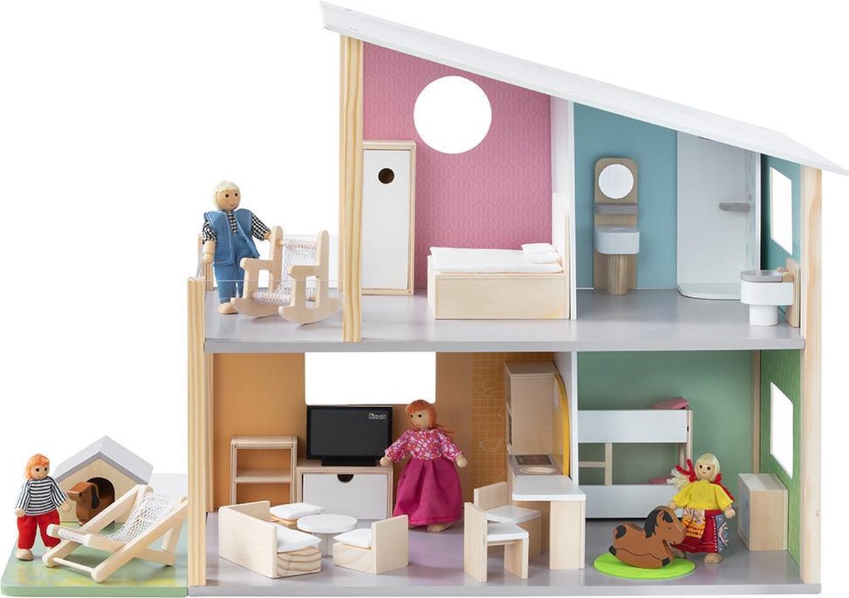 houten poppenhuis Happy Villa inclusief meubels 28-delig.