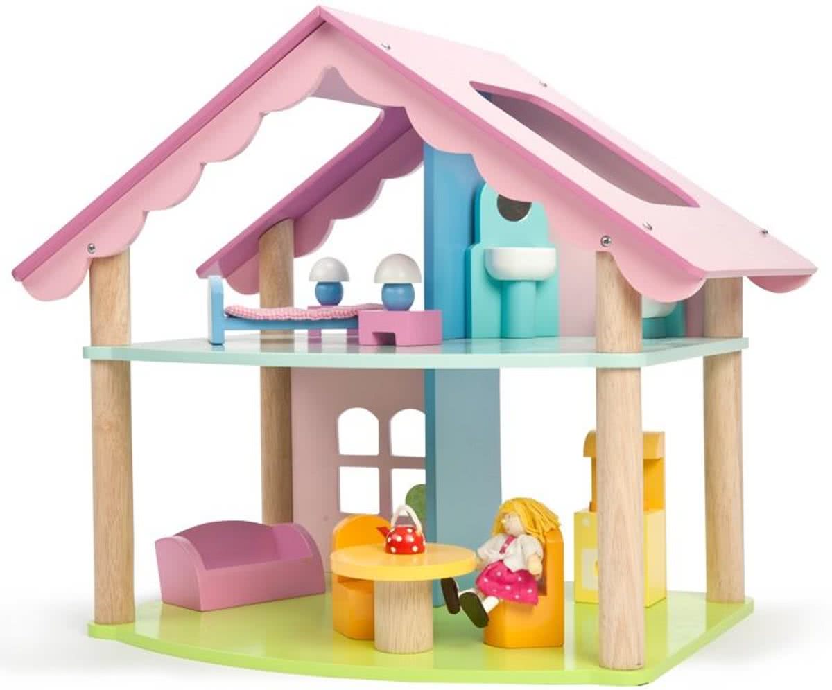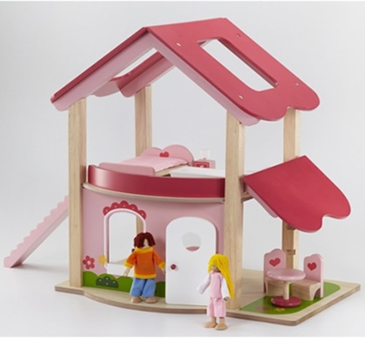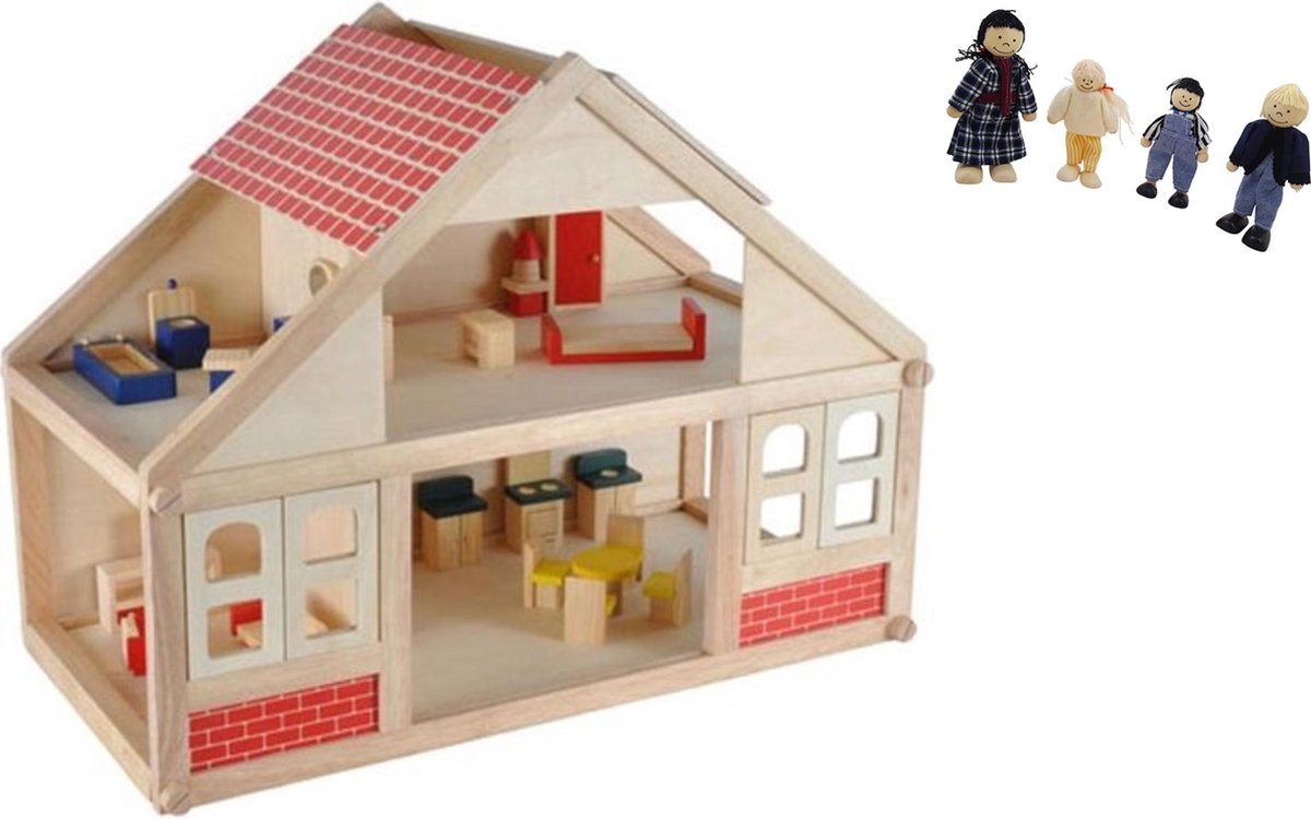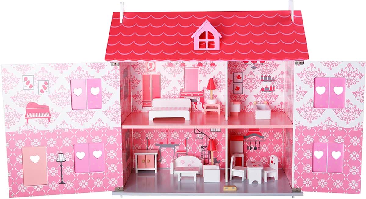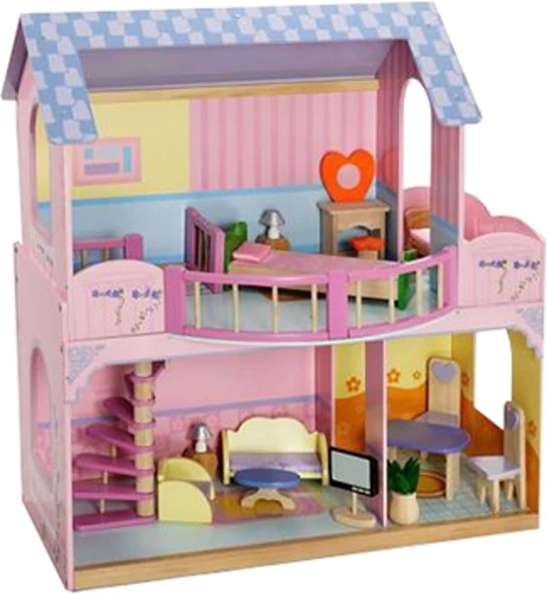 houten poppenhuis Happy Villa inclusief meubels 28-delig.