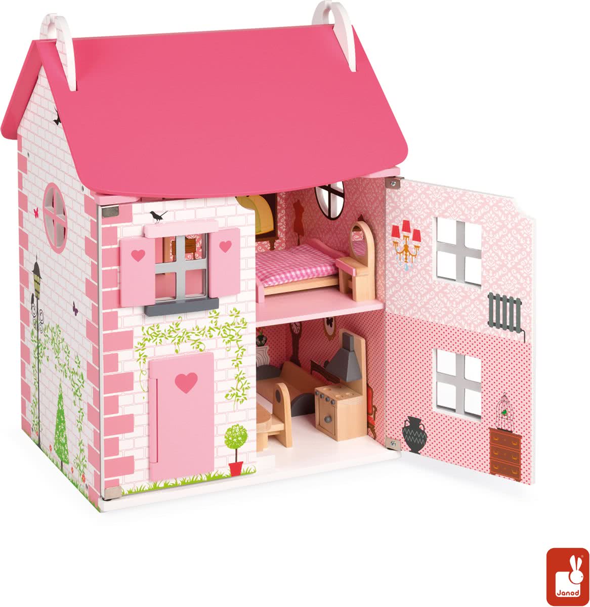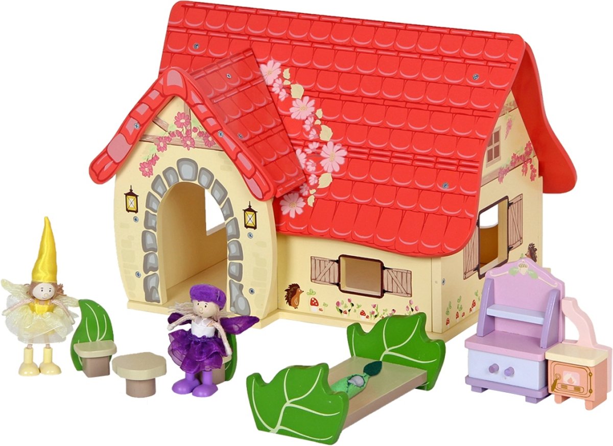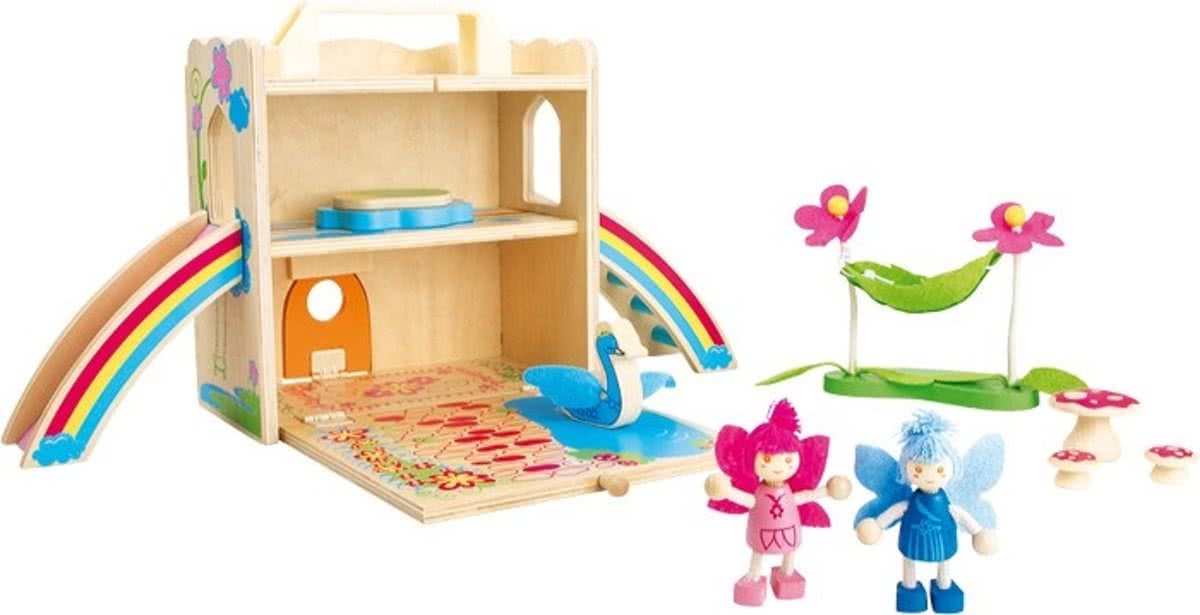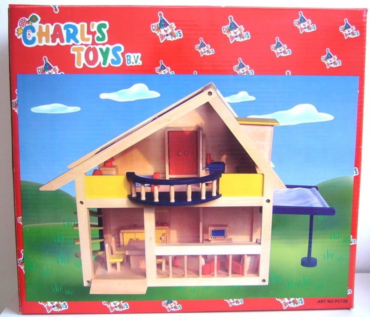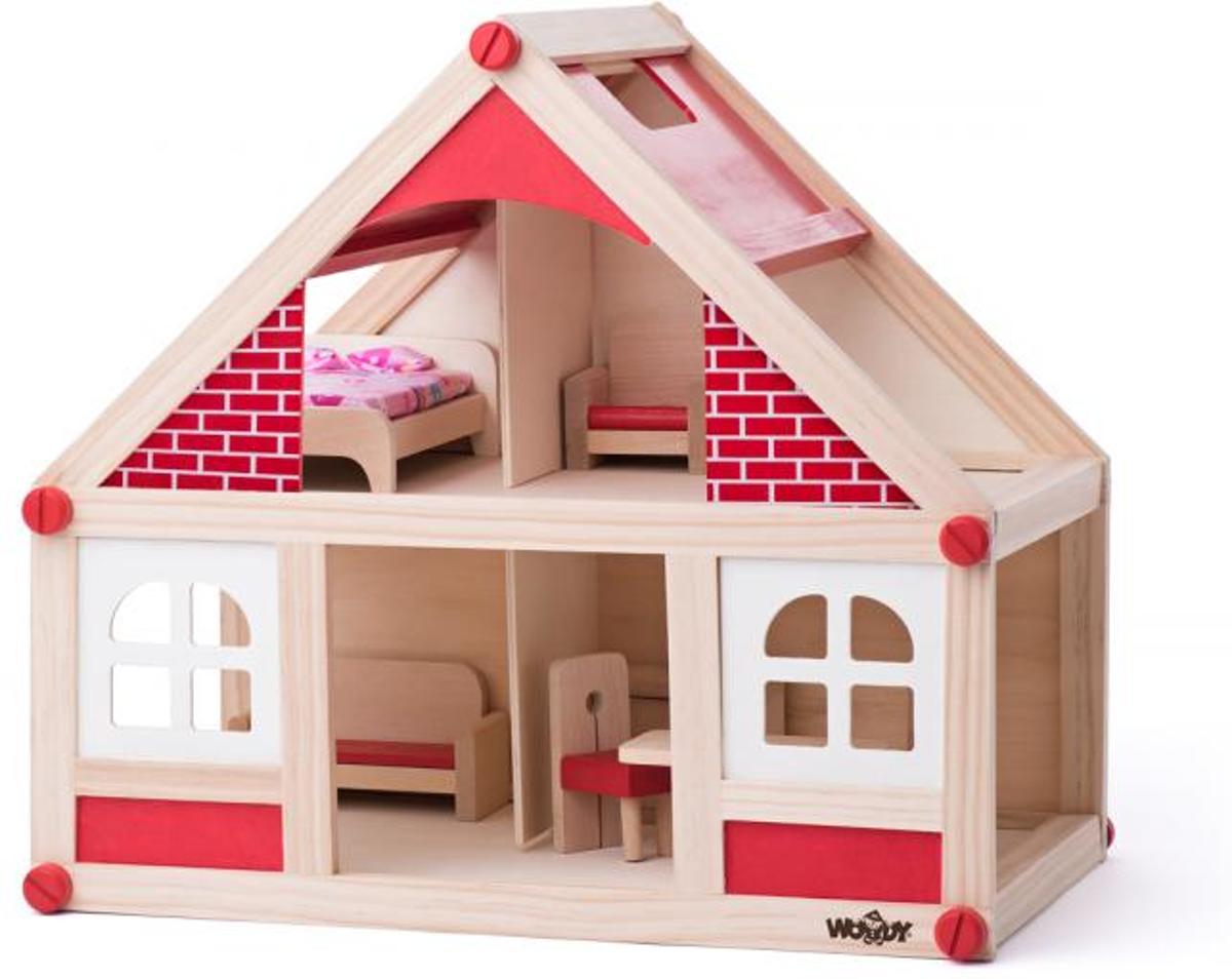 houten poppenhuis Happy Villa inclusief meubels 28-delig.