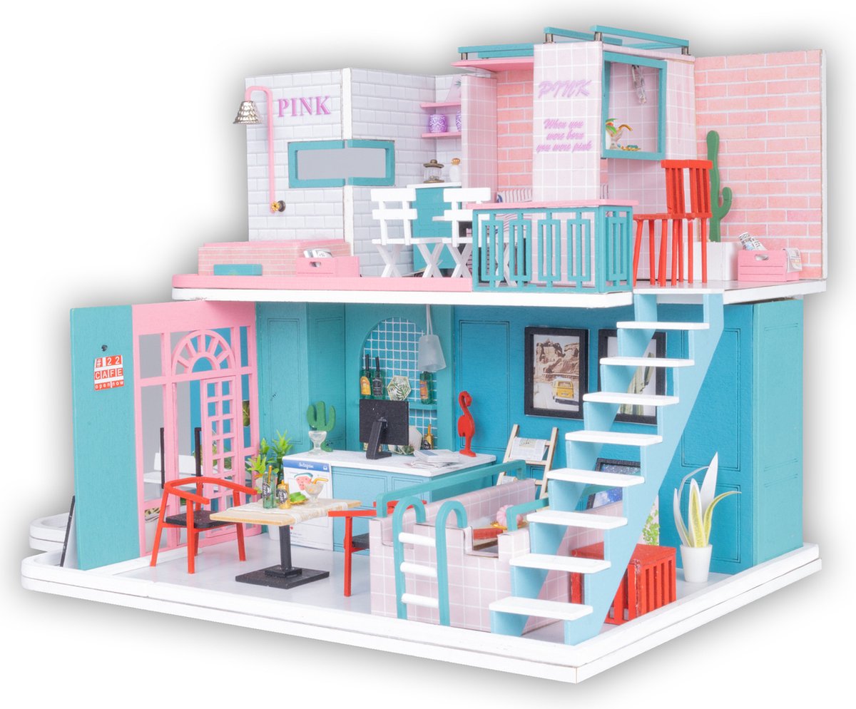 Miniatuur Bouwpakket M Volwassenen - Hout - DIY - Knutselen Meisjes - Koffiehuis -