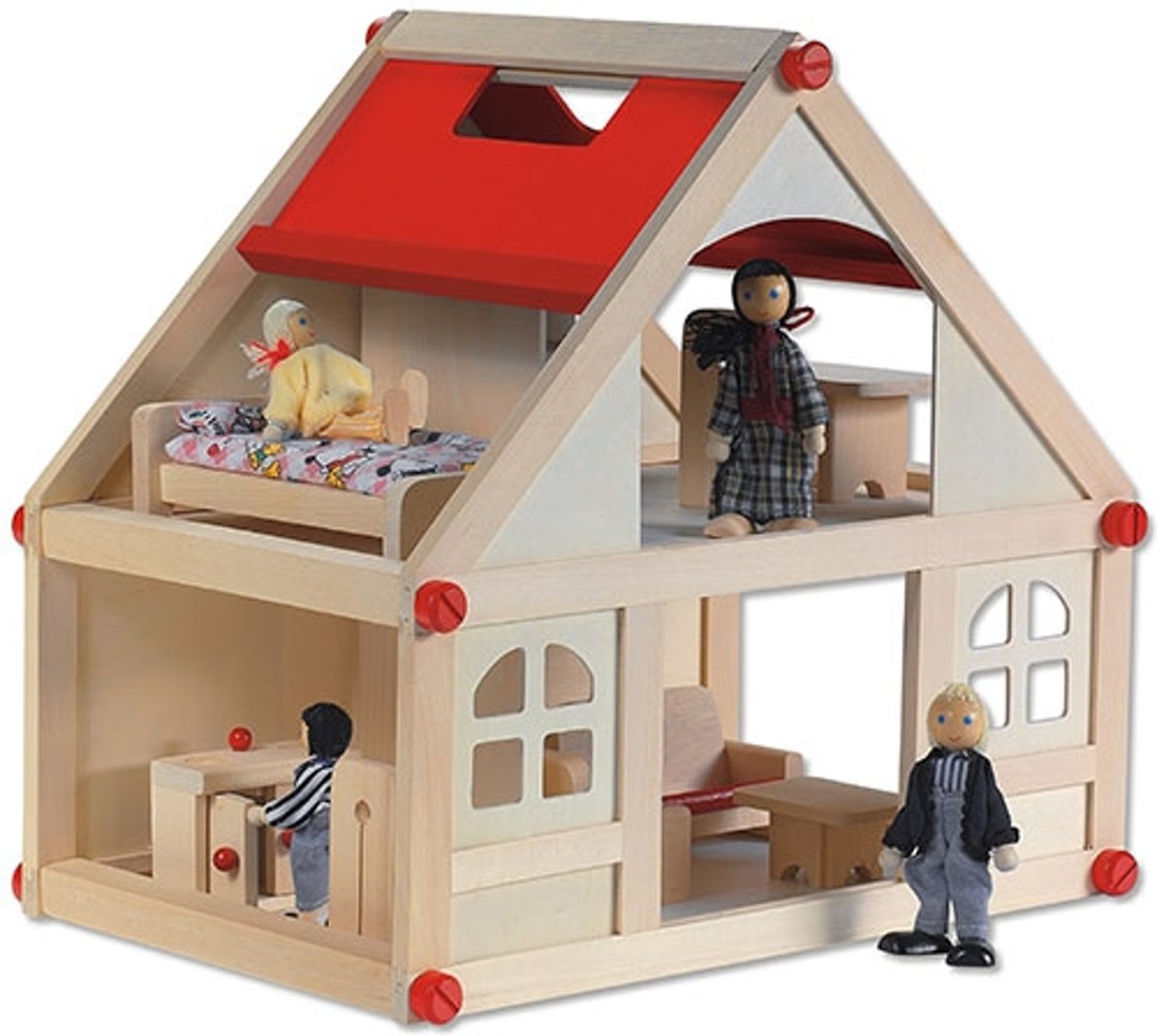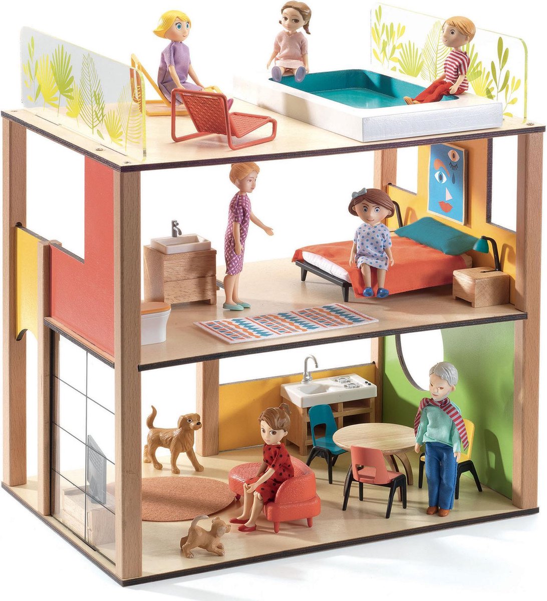 [A] Tender Leaf uniek houten poppenhuis Dovetail XL in neutrale kleuren inclusief houten poppen familie 4 stuks - 68 x 70 cm - Fairtrade
