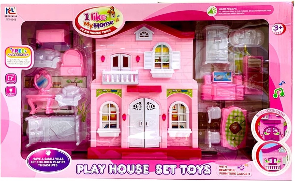 ® - - Paars - met Ponys - Inclusief Meubels - met Pony - met Pop - Draagbaar - Speelgoed - Rollenspel Speelgoed - Educatief - Kinderen - Jongens en Meisjes - Huis voor Poppen
