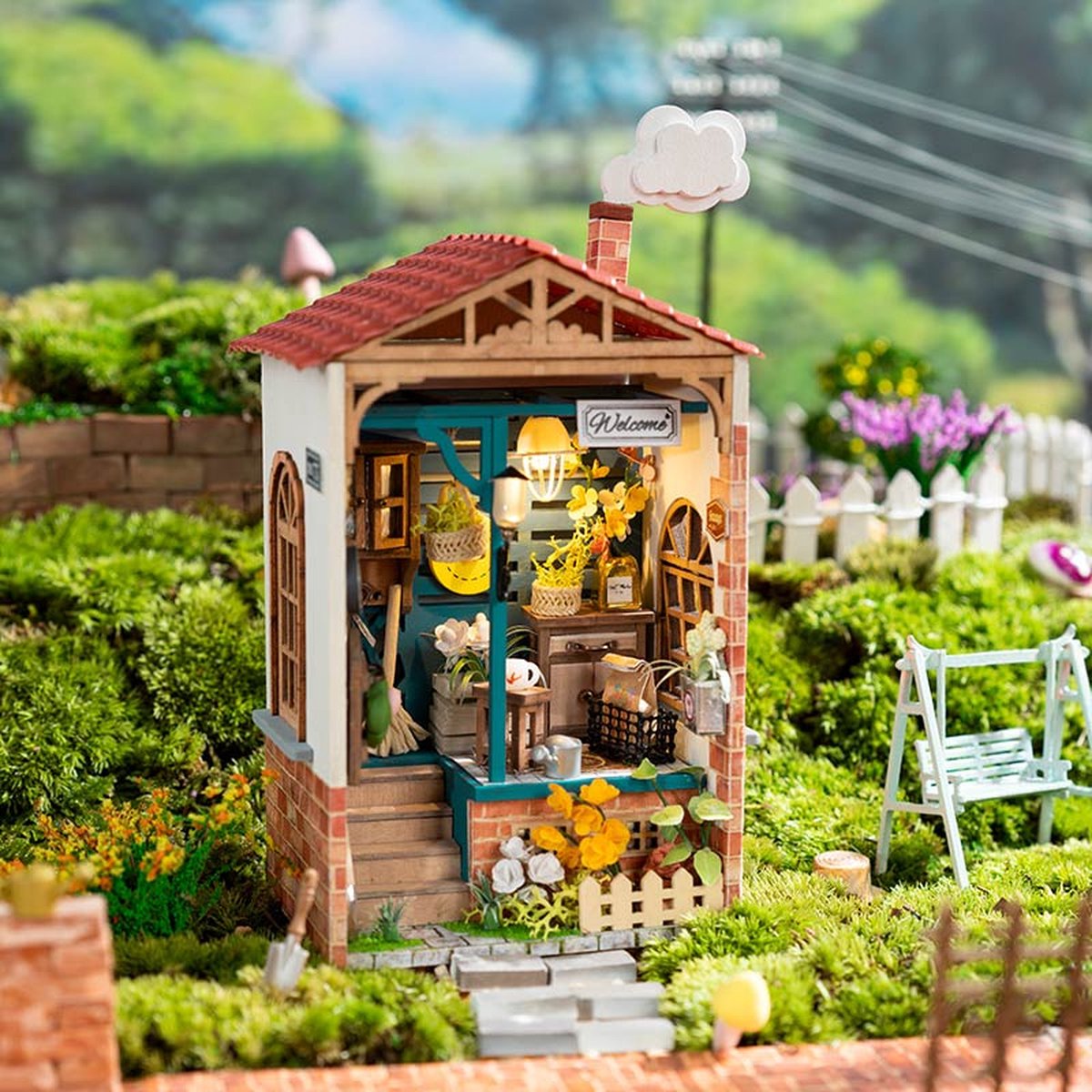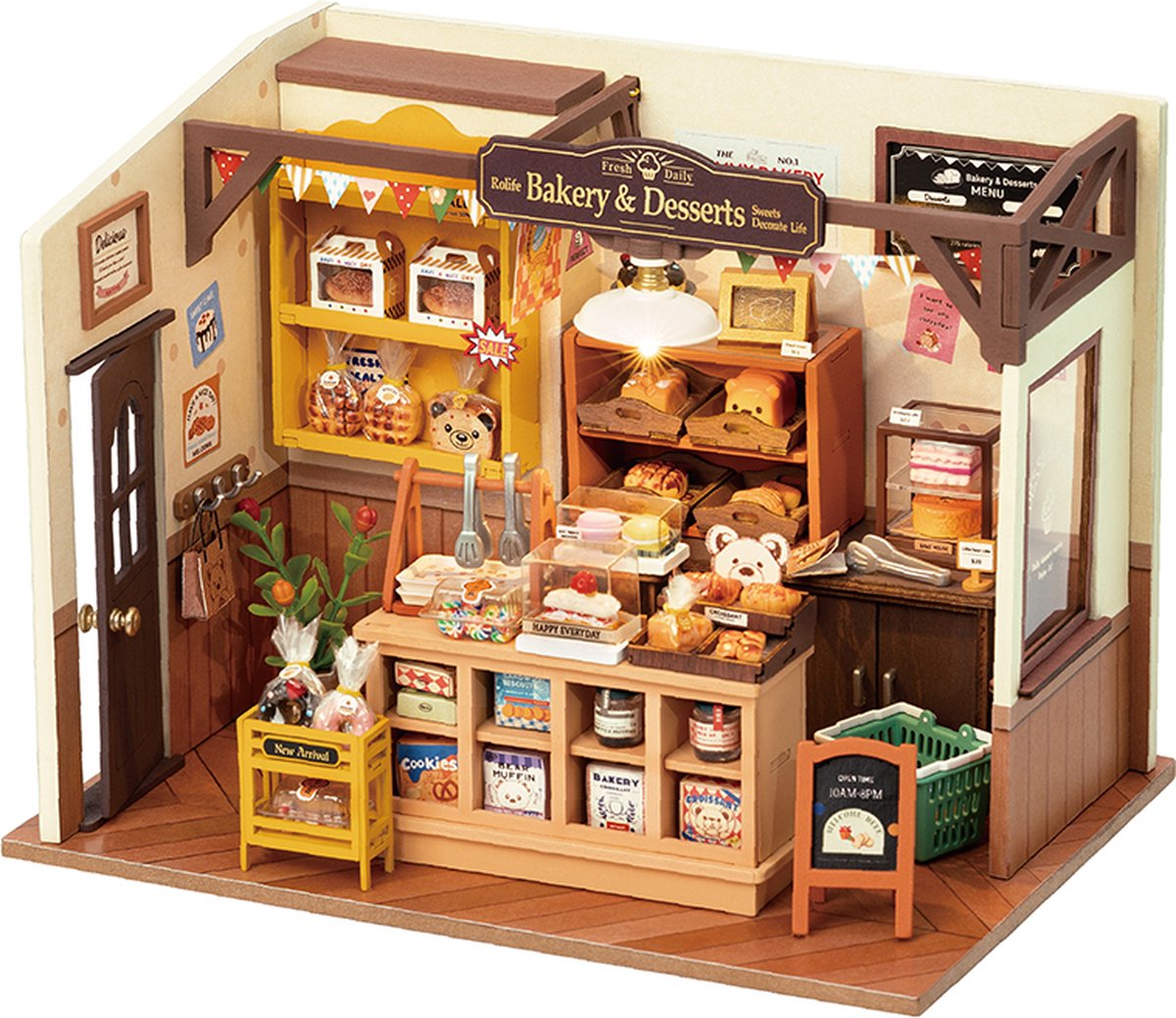 Doe-het-zelf Miniatuur Bakkerij Bouwpakket met LED Verlichting - Creatief Model voor Volwassenen en Kinderen - Ontspannend Knutselproject met Gedetailleerde Meubels en Accessoires
