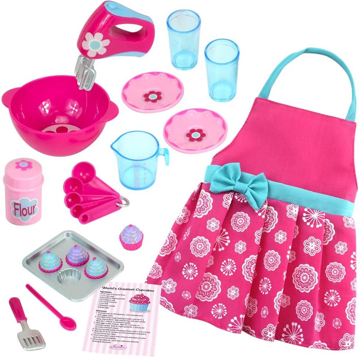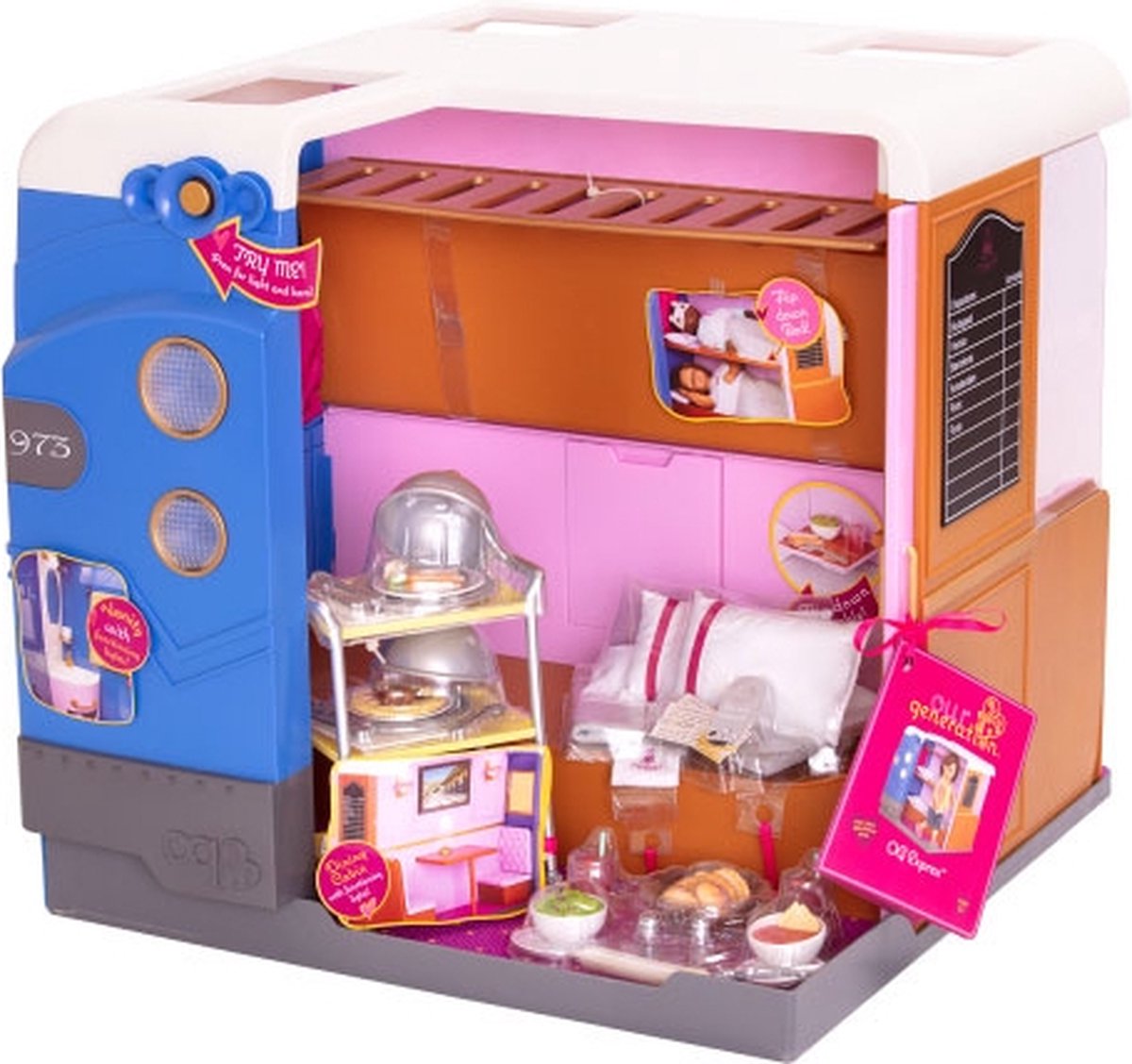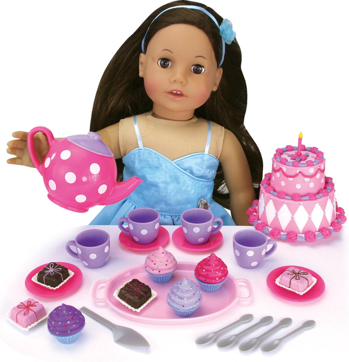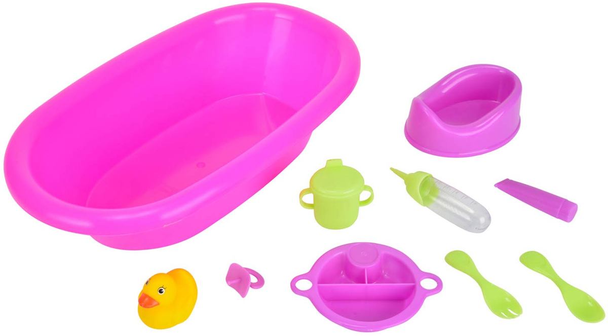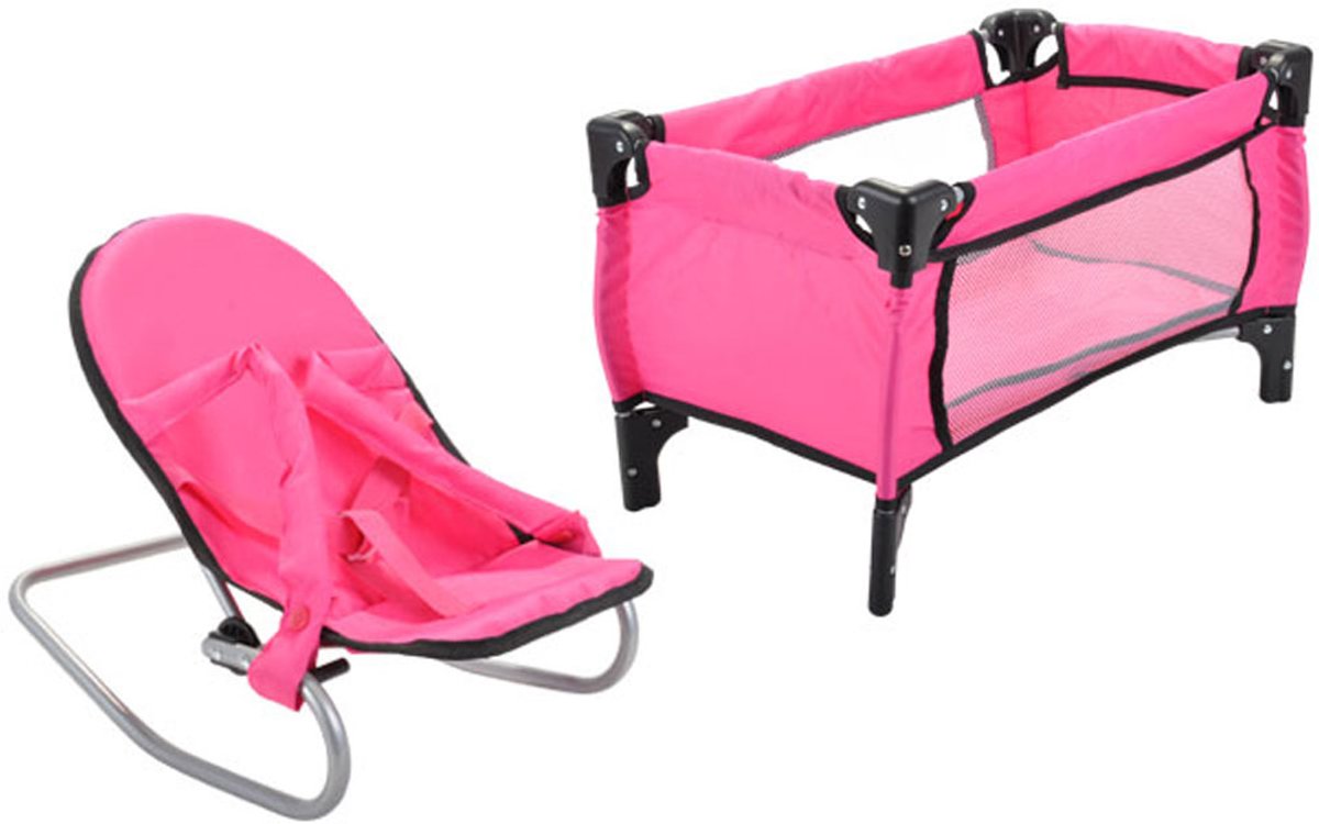 Poppen Accessoires - Poppenstoel - Bed - Speelboog - Tas - Bord - Bestek - Drinkbeker - Roze En Blauw - Met Sterrenpatroon