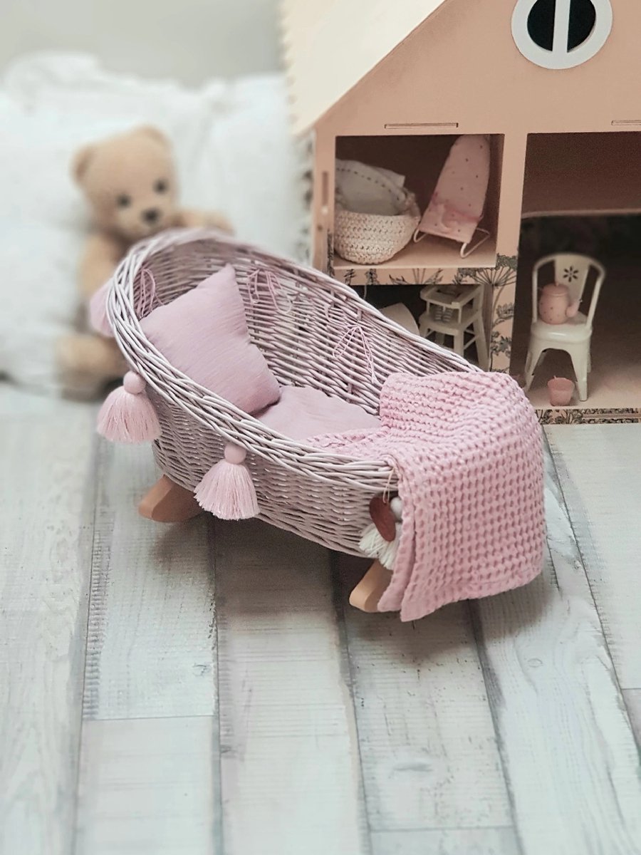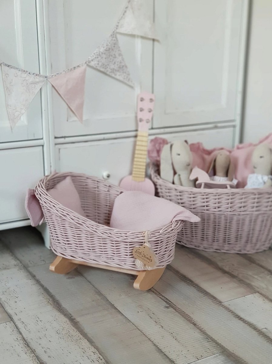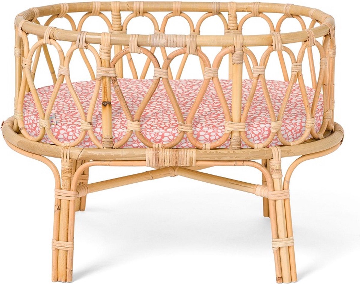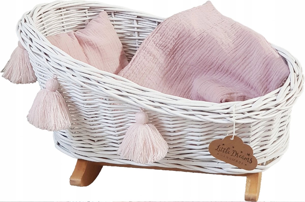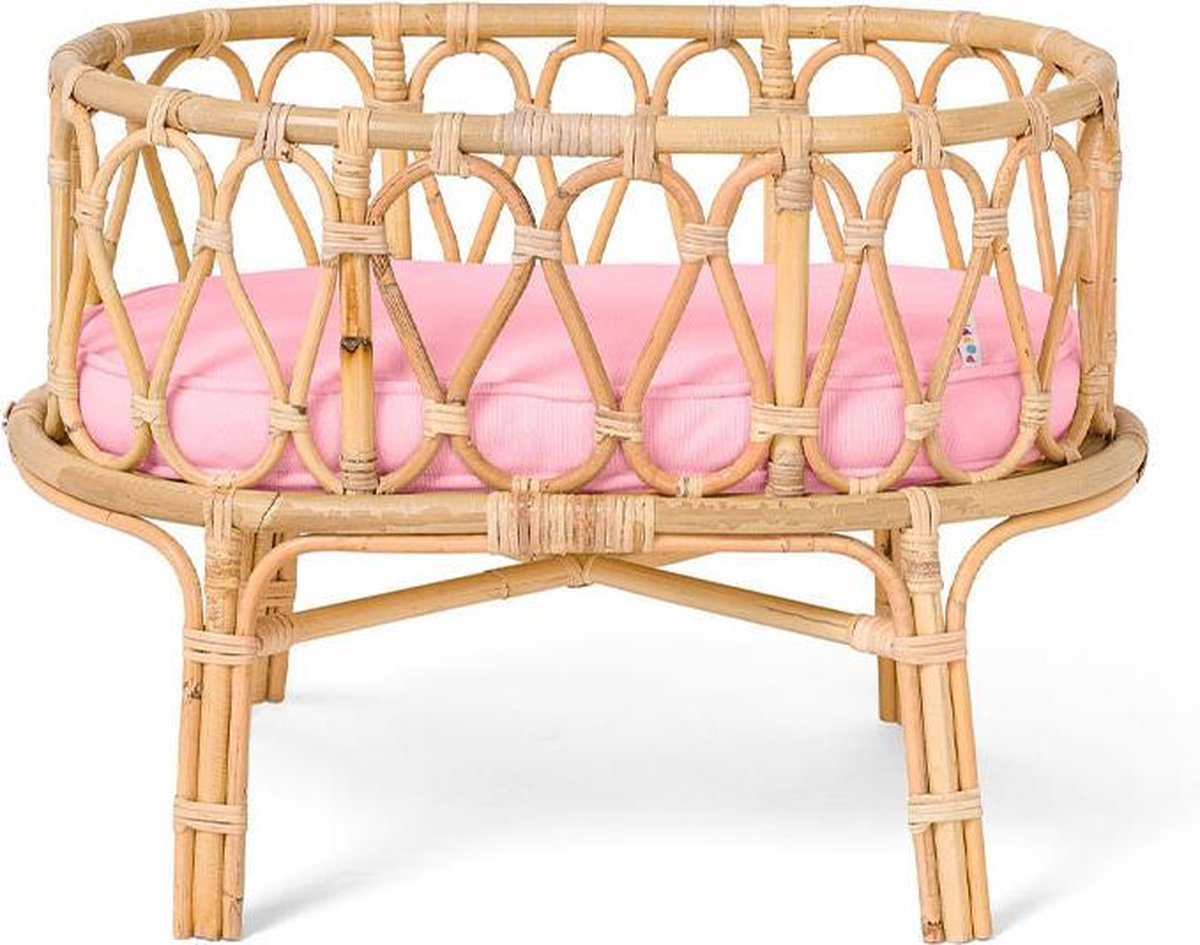 Wicker24 Mimi - Poppenwieg met kussen en deken - Perfect als cadeau voor een meisje - Natuurlijk / Roze