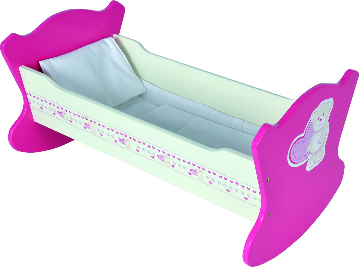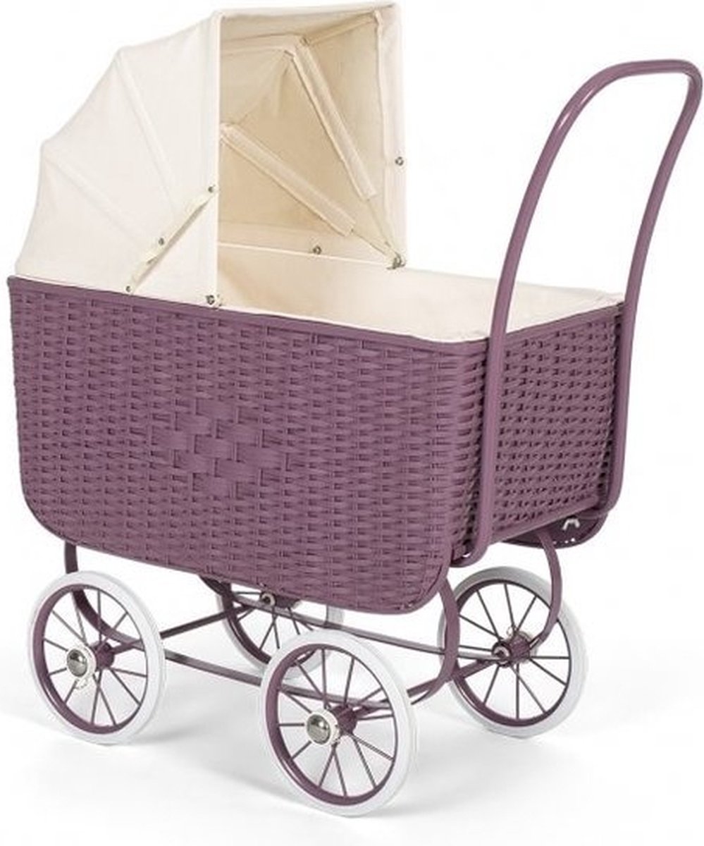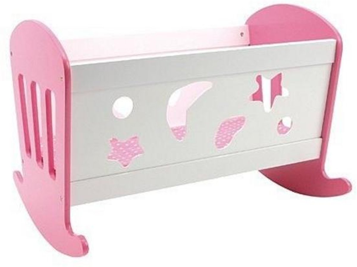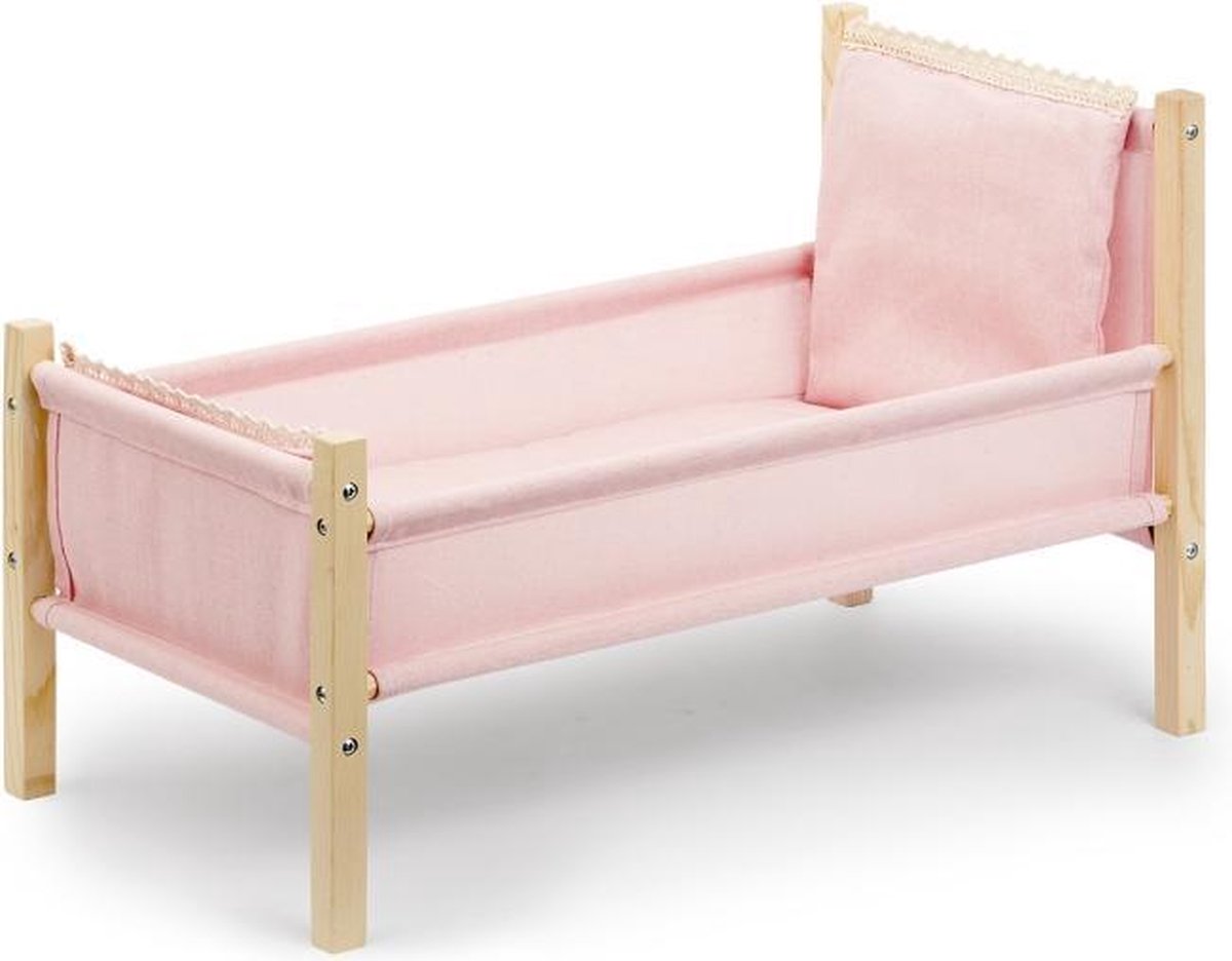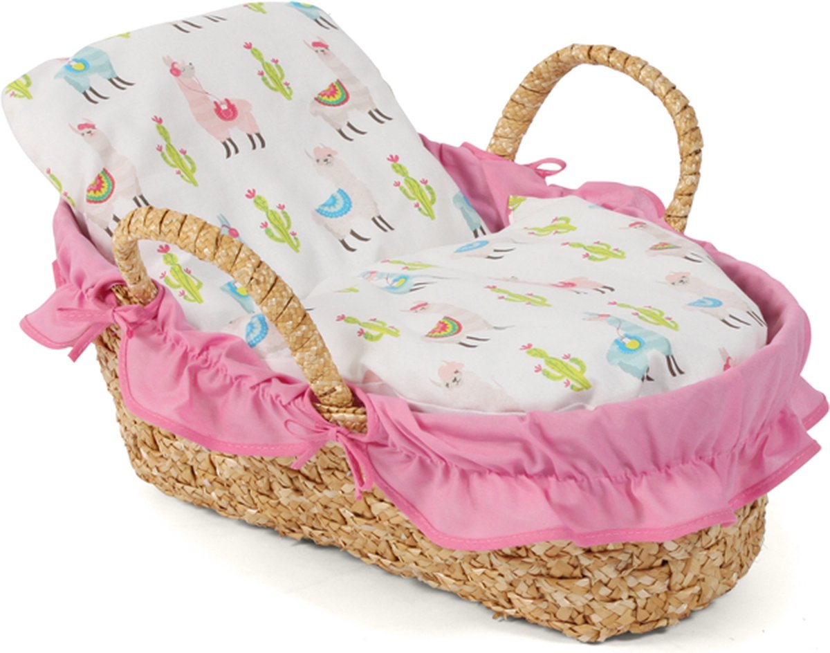 Wicker24 Mimi - Poppenwieg met kussen en deken - Perfect als cadeau voor een meisje - Natuurlijk / Roze