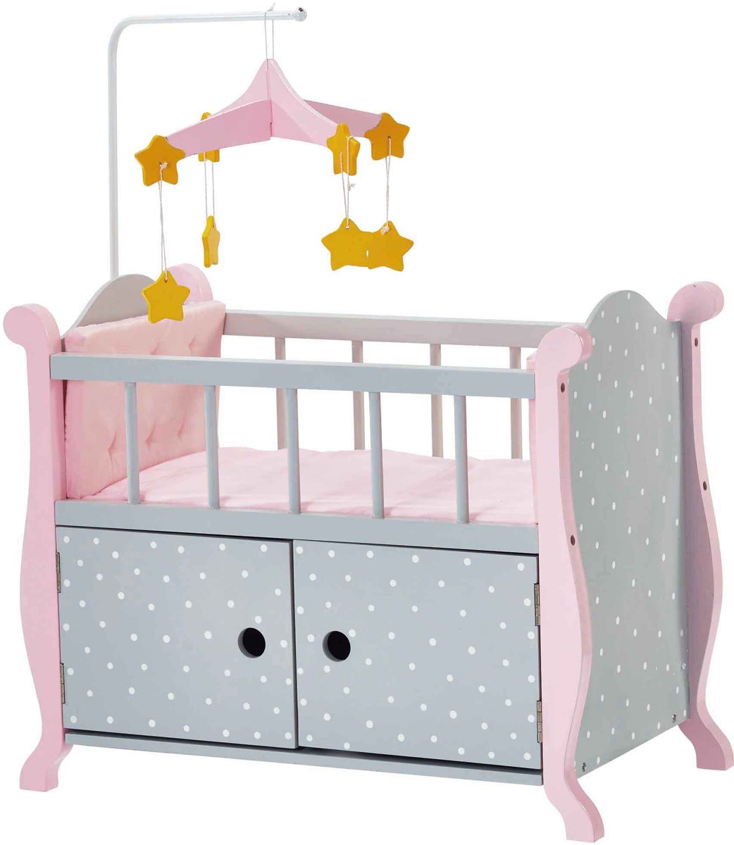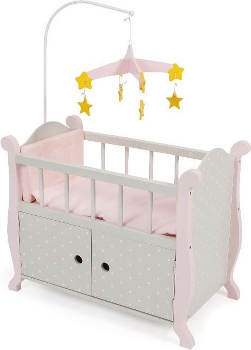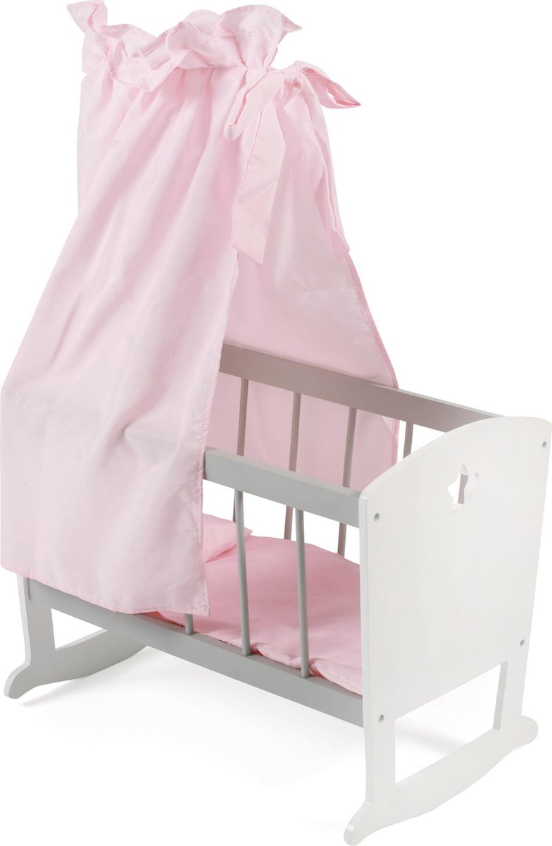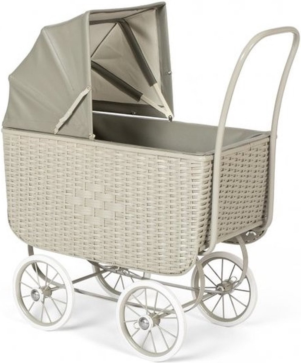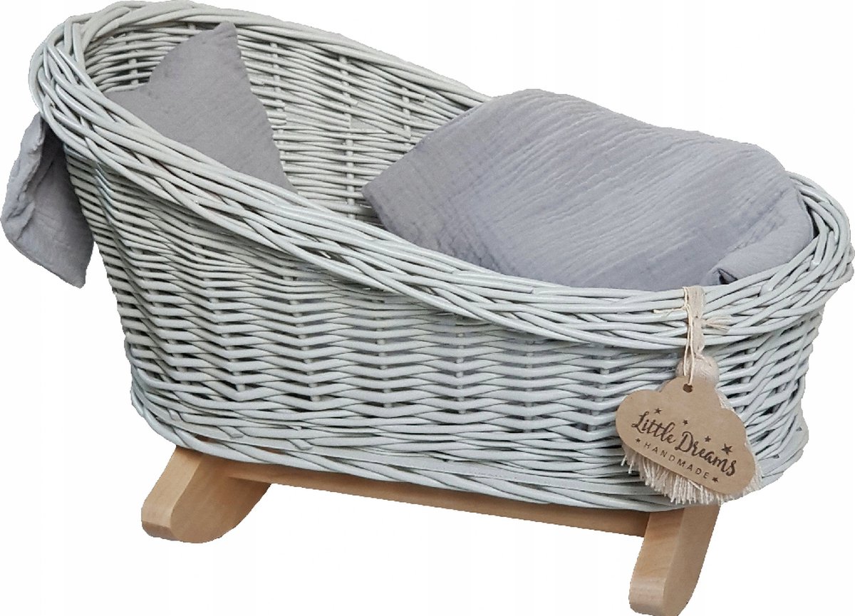 Wicker24 Mimi - Poppenwieg met kussen en deken - Perfect als cadeau voor een meisje - Licht / Grijs