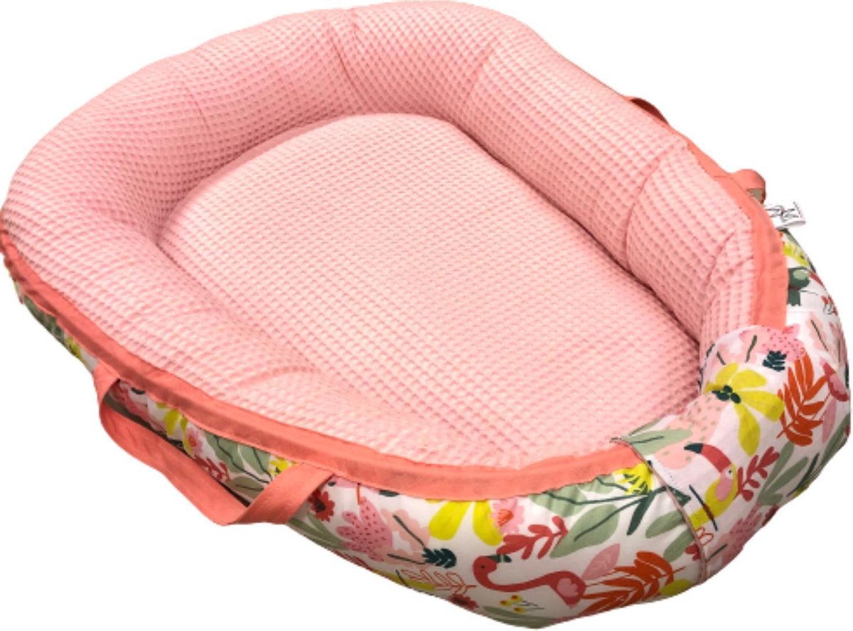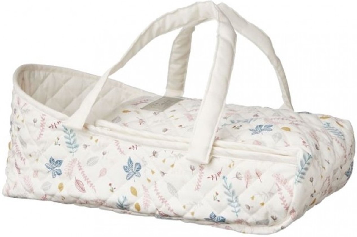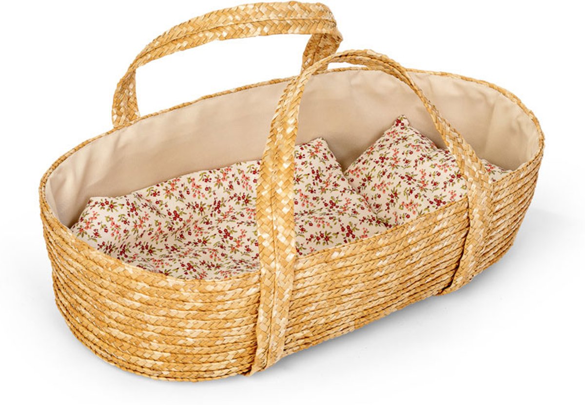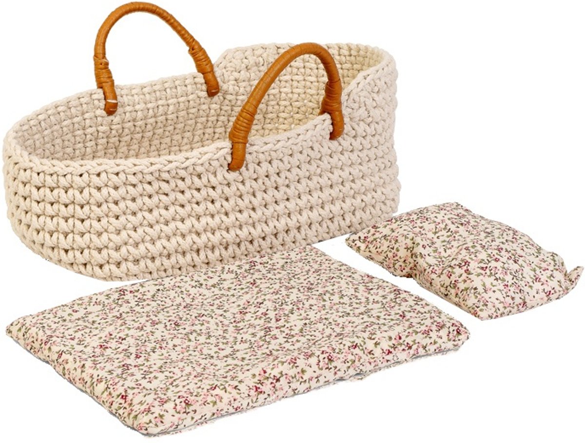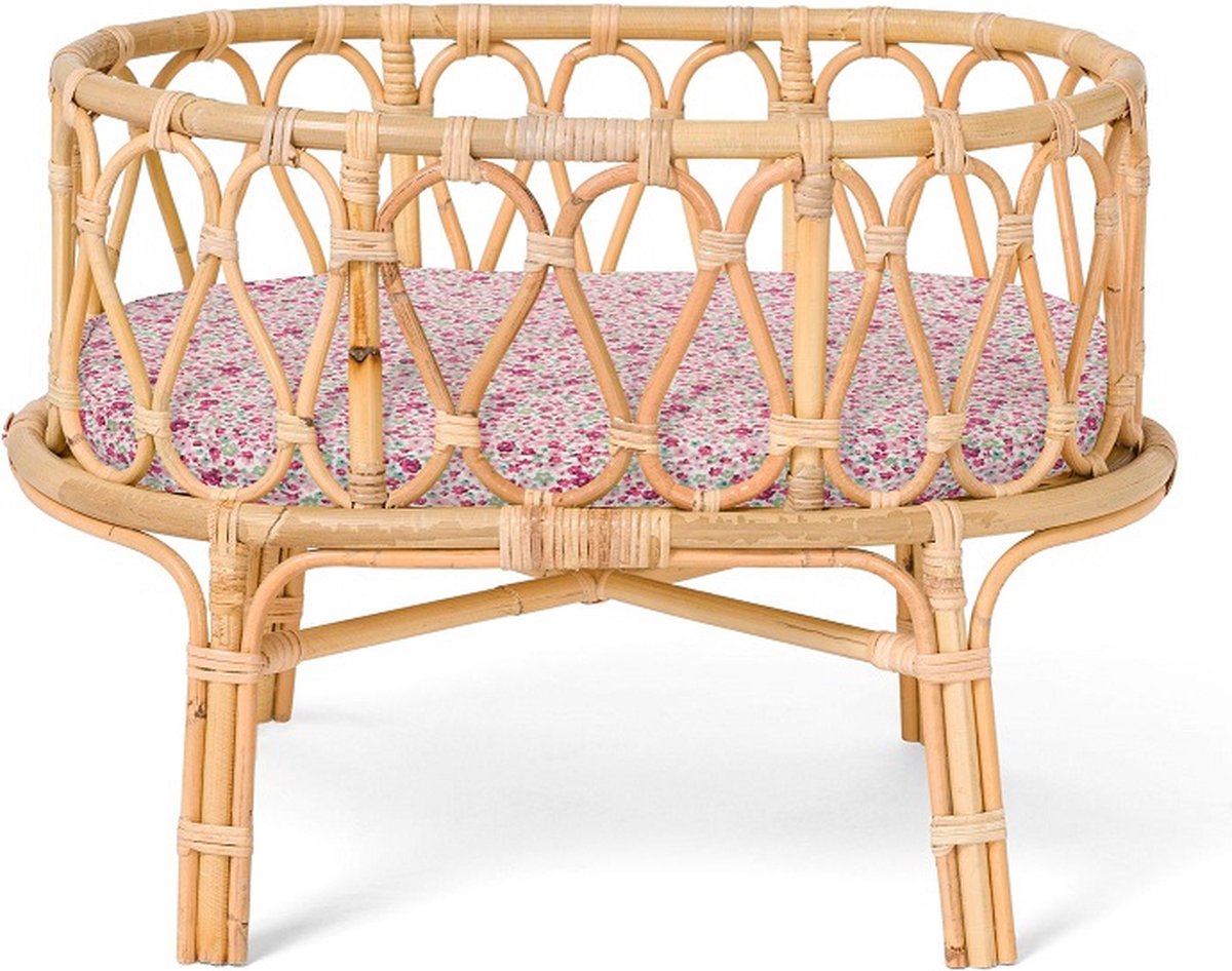 houten poppenwieg met afneembaar poppendraagmandje van zeegras "miniflowers" 2360