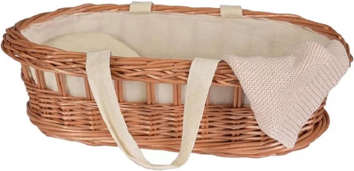Wicker24 Mimi - Poppenwieg met kussen en deken - Perfect als cadeau voor een meisje - Natuurlijk