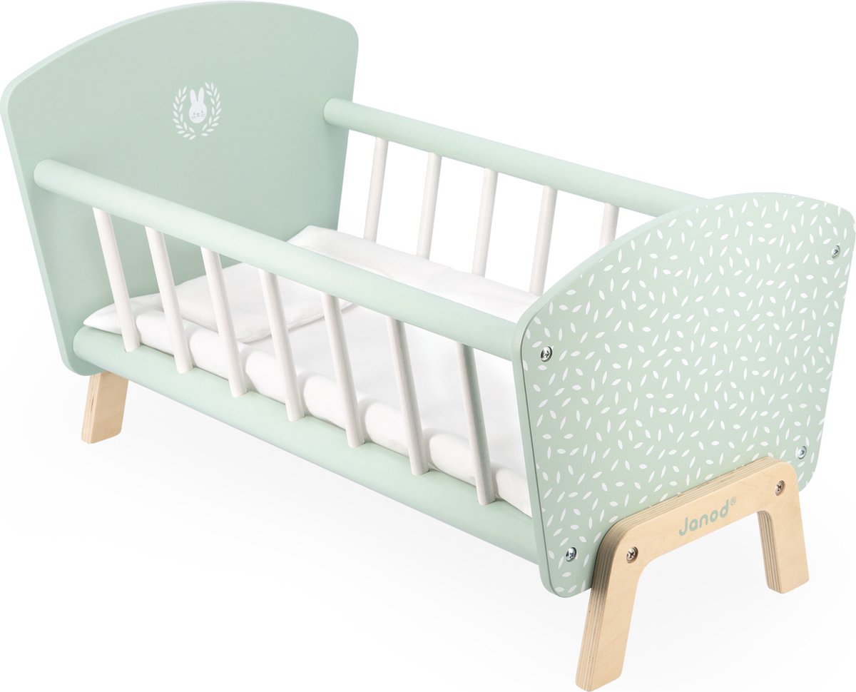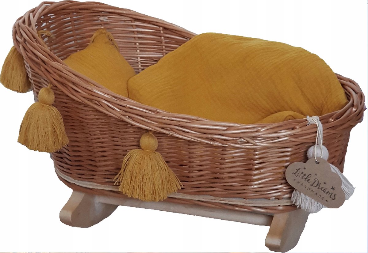 Wicker24 Mimi - Poppenwieg met kussen en deken - Perfect als cadeau voor een meisje - Munt