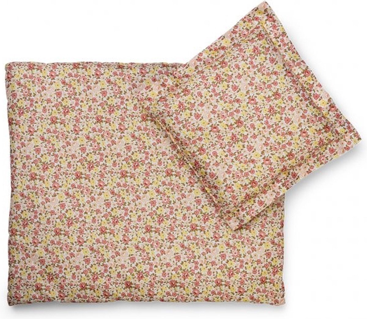 Houten Poppenbedje “miniflowers” met Mobiel inclusief Beddengoed 2160