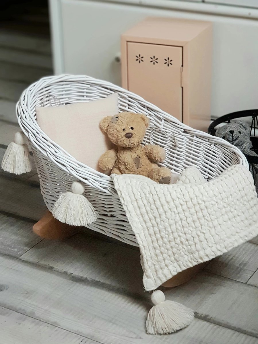 Poppenmand - poppen - wieg poppen - marrokaanse mand - rotan mand - trunk - storage - basket - onderhoud - opruimen - doll basket - palmleaves basket