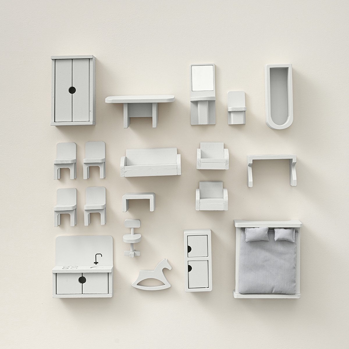 Luxe Poppenbed - Poppenbedje Hout - Poppenhuis Meubels - Grijs