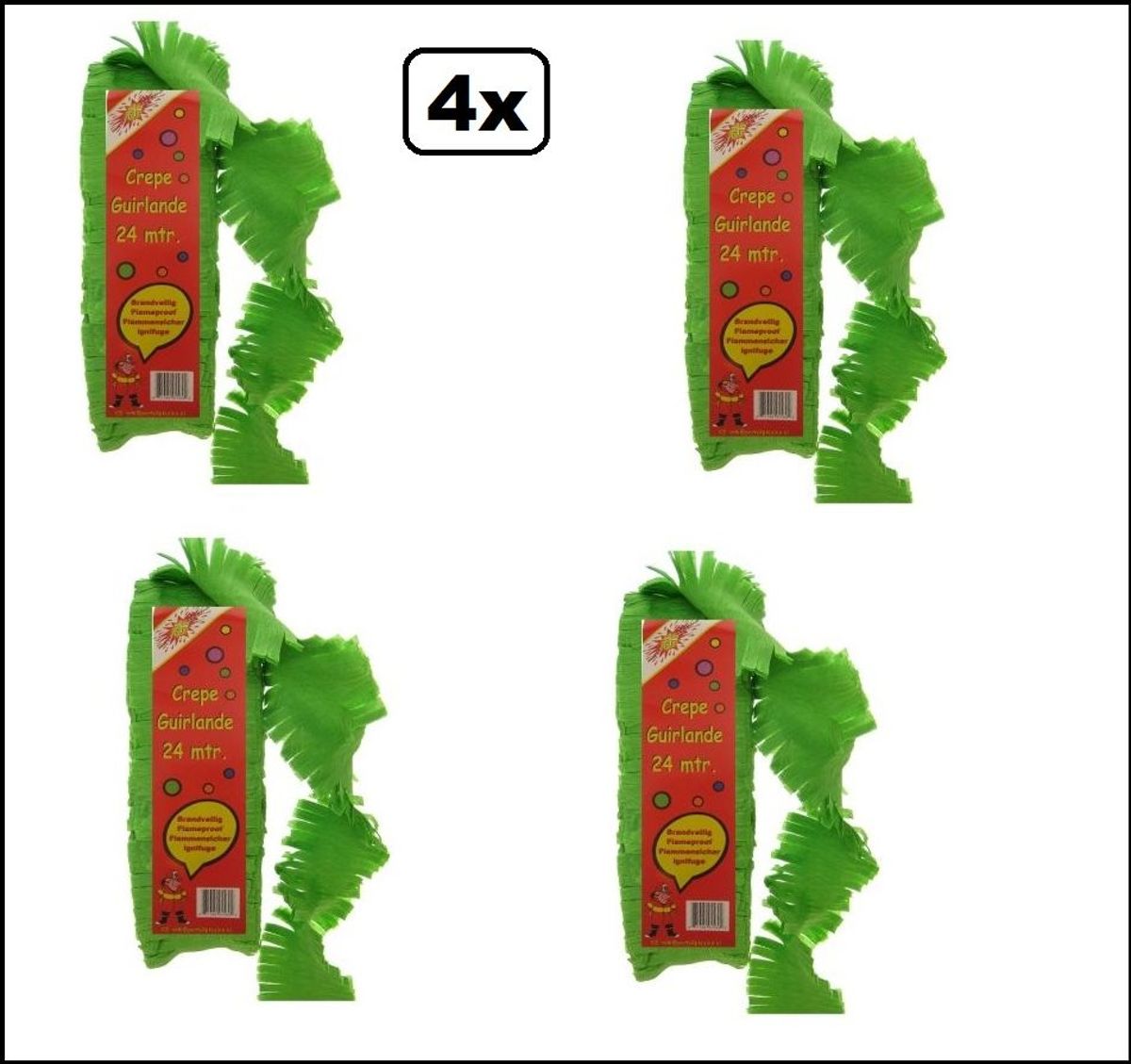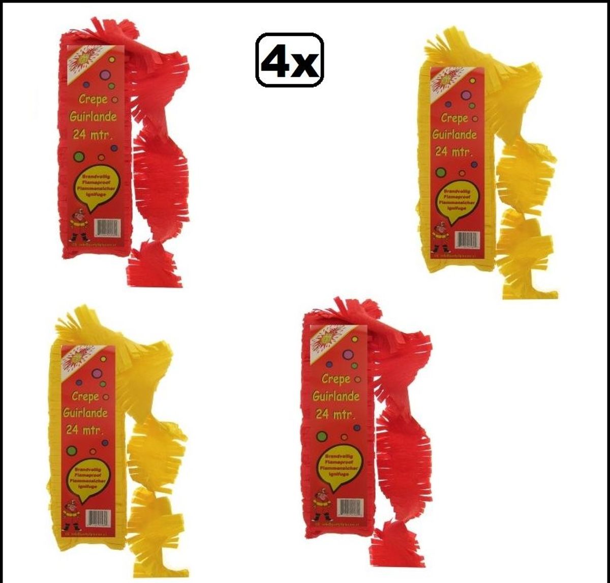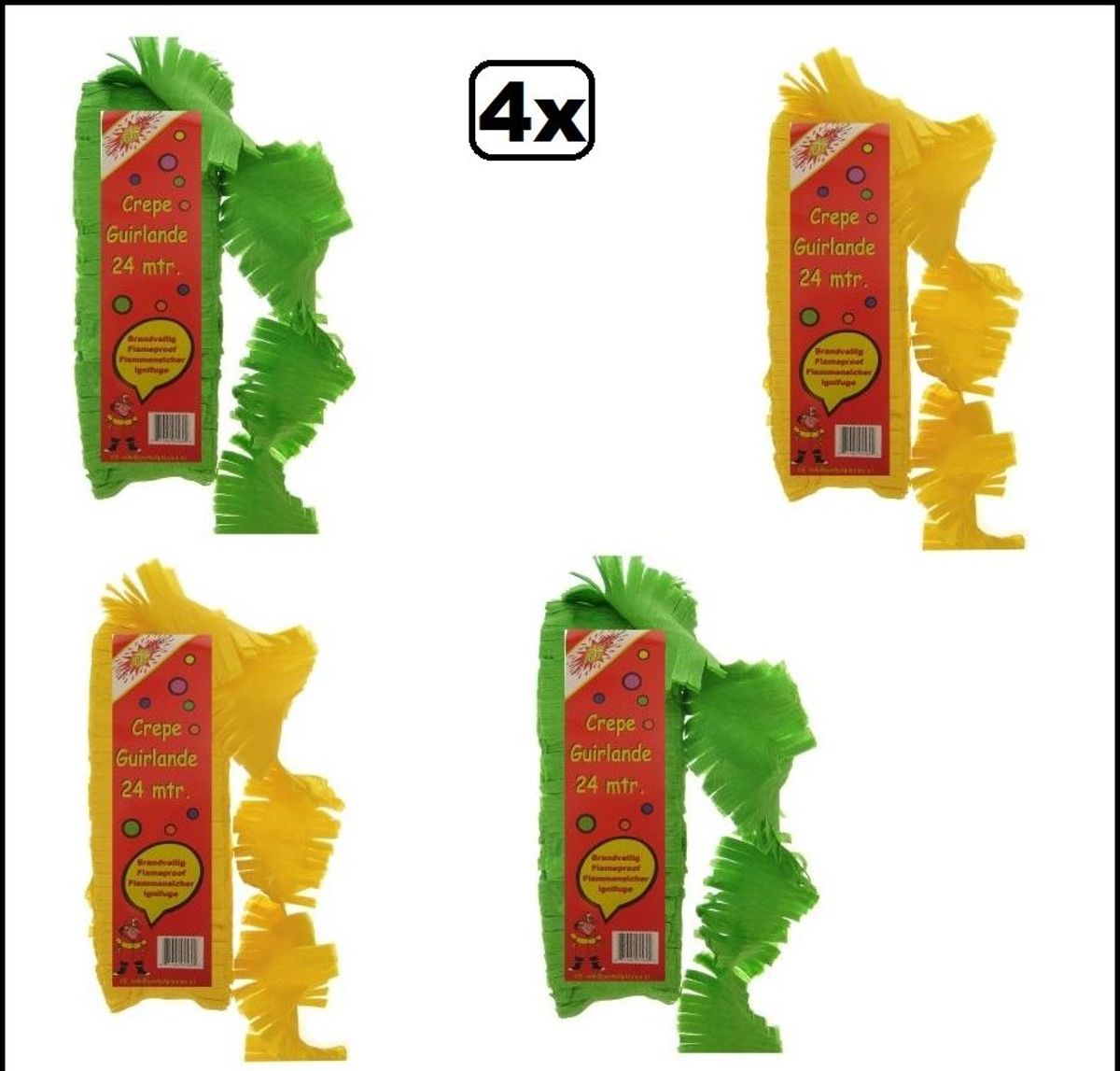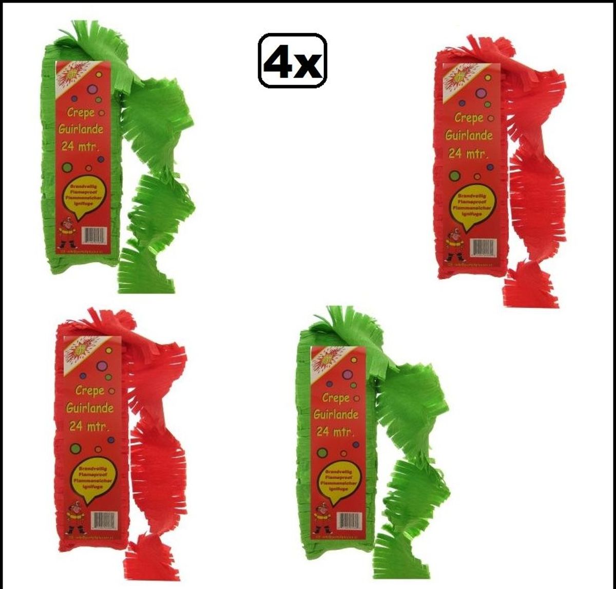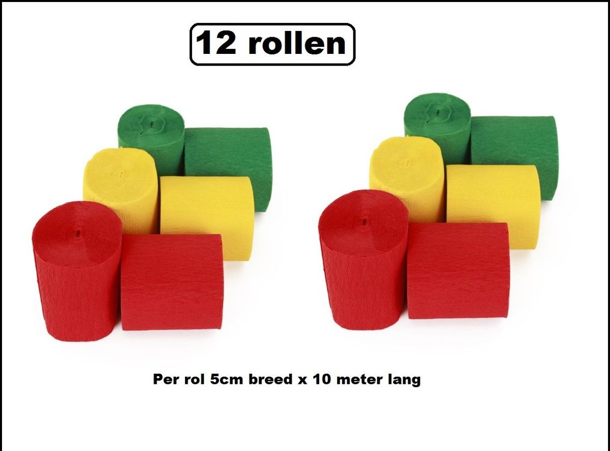 12x Crepe rollen rood/geel/groen 10 meter brandveilig