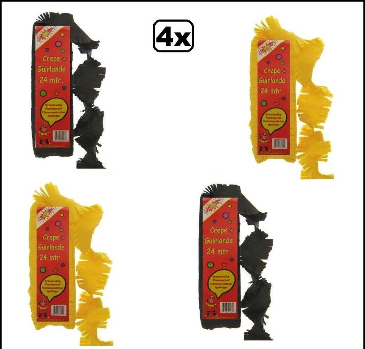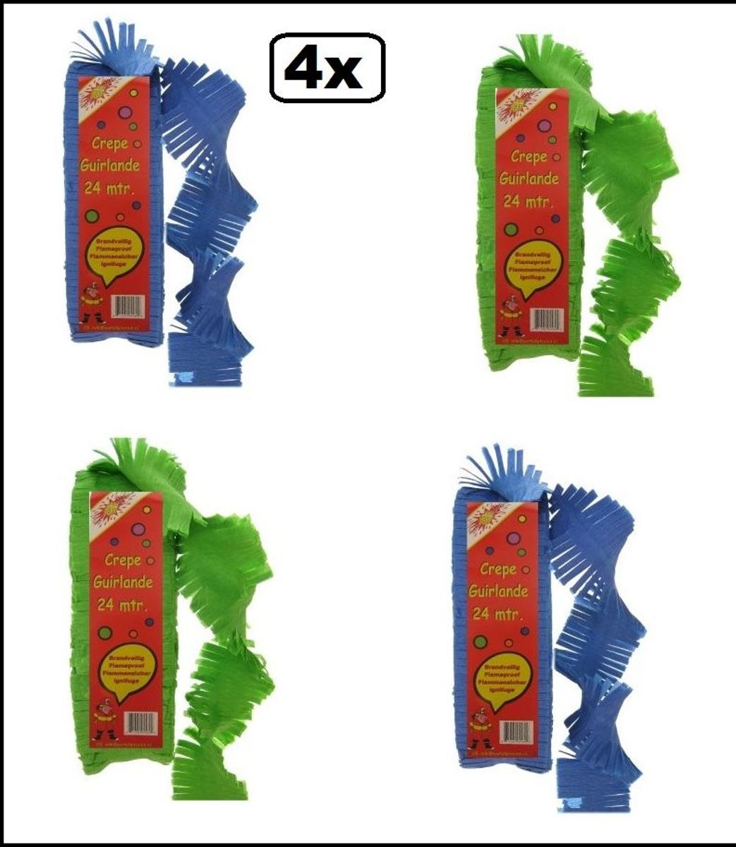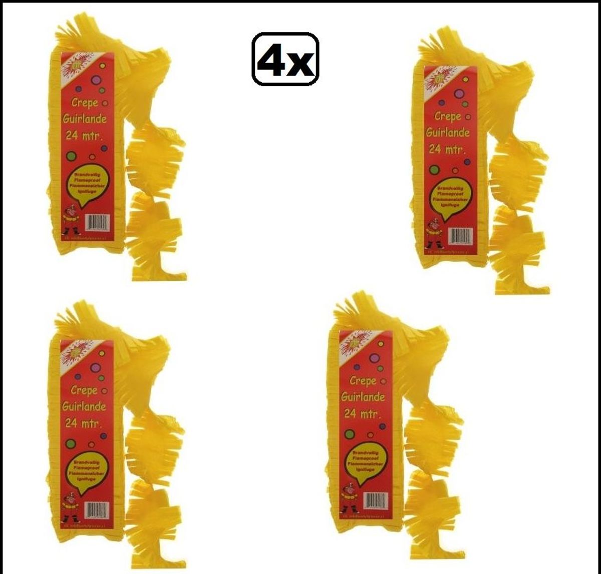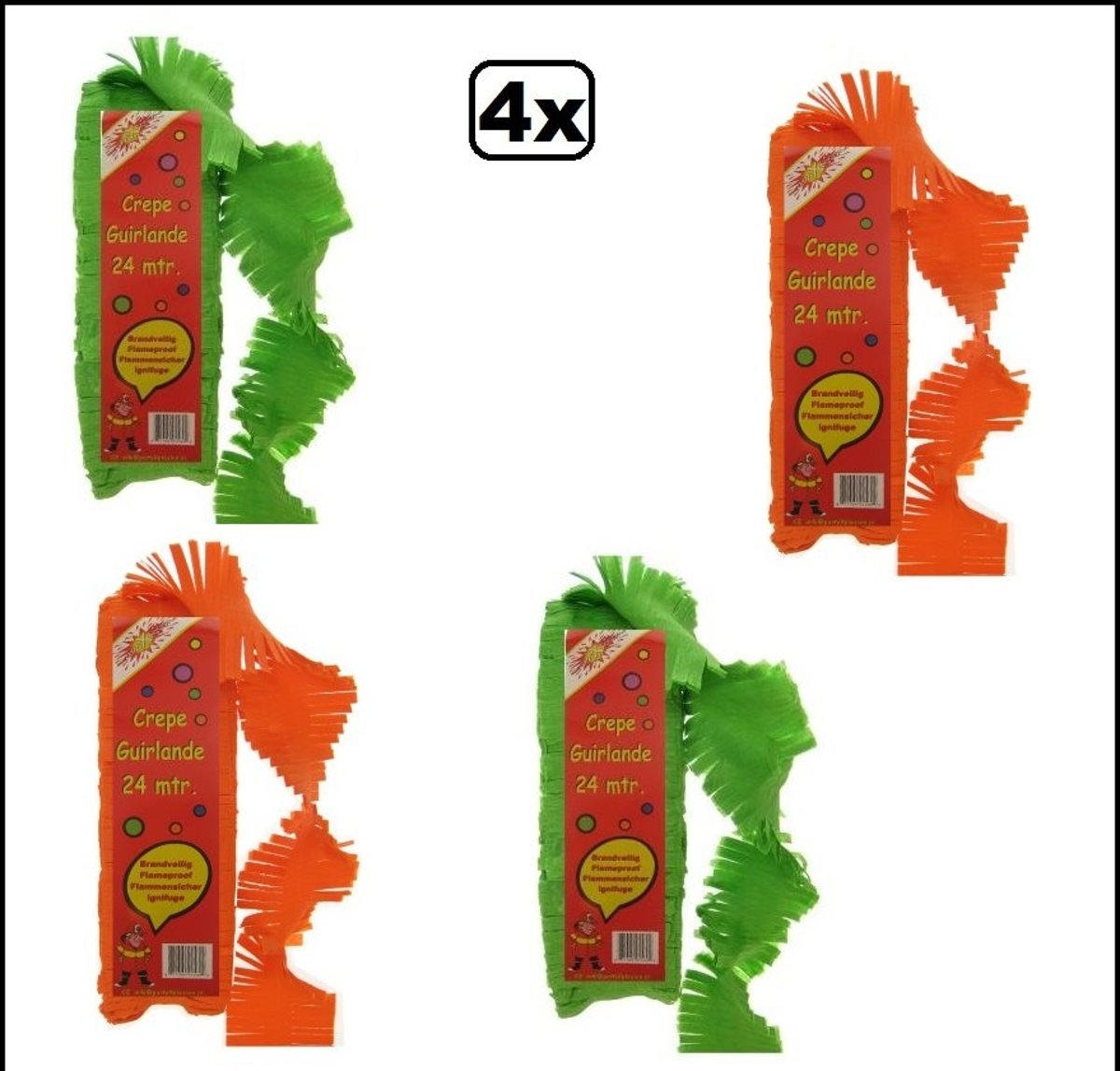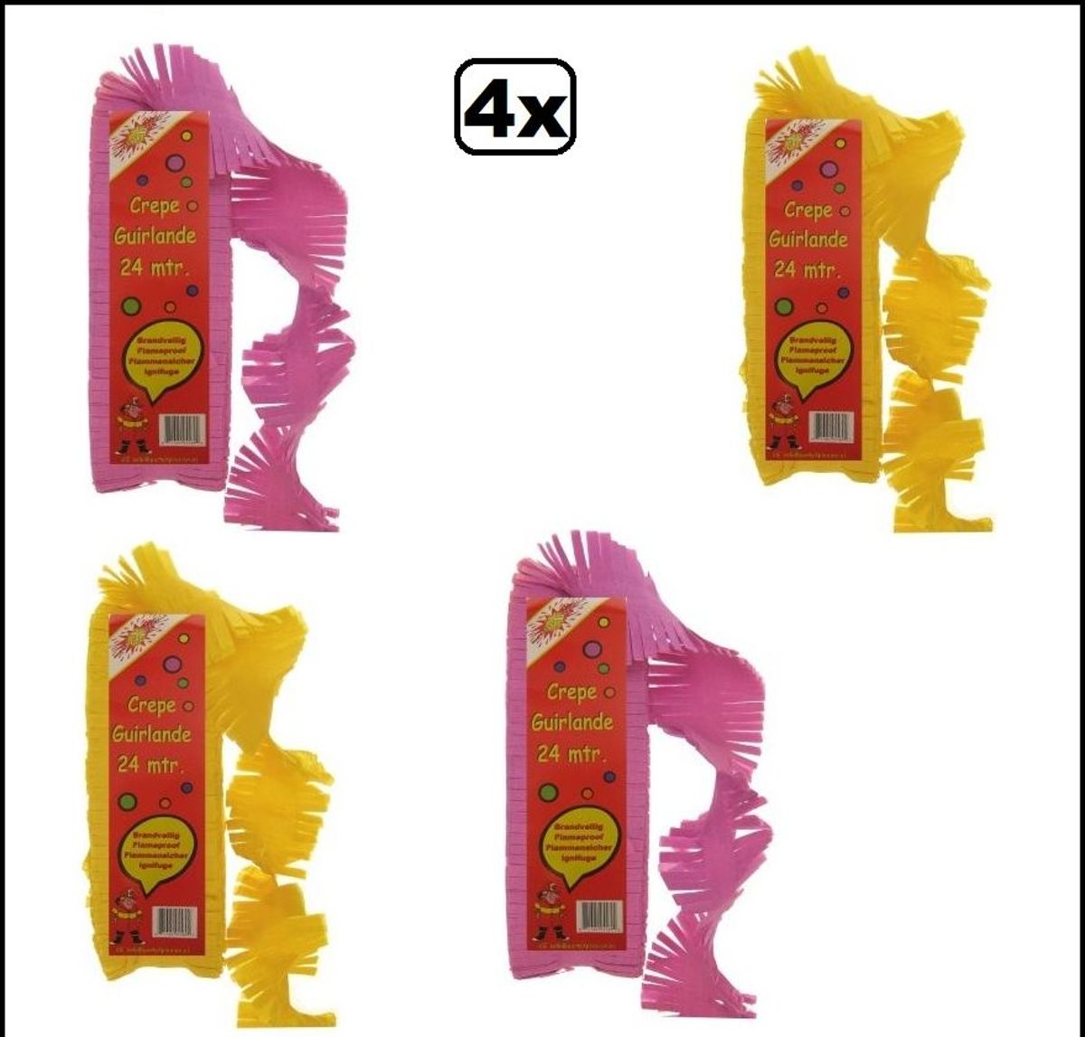 12x Crepe rollen rood/geel/groen 10 meter brandveilig