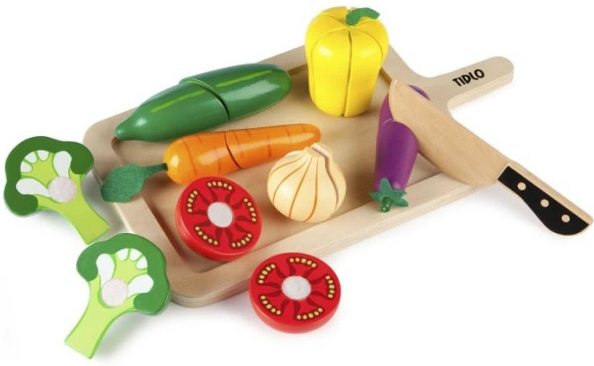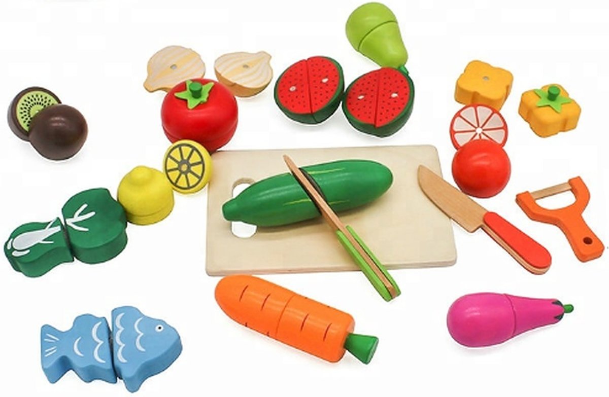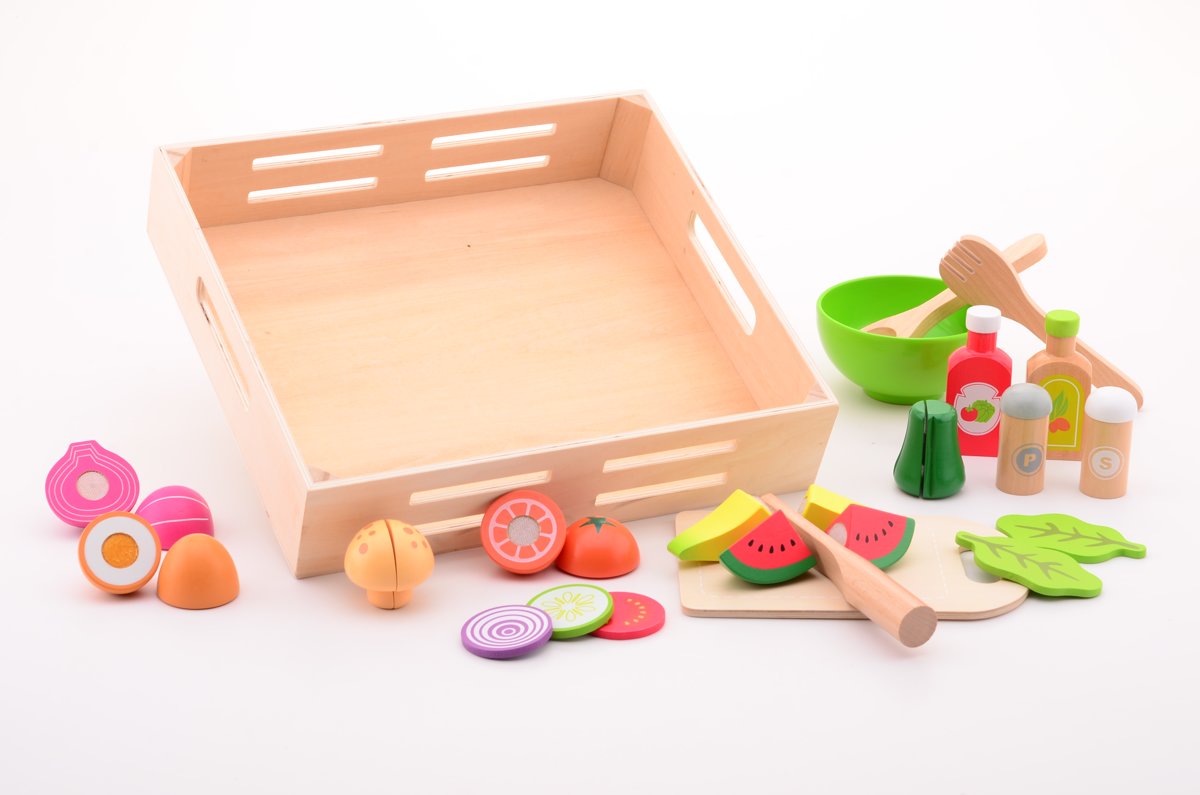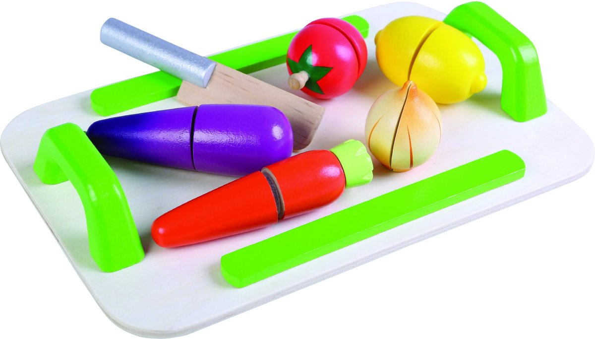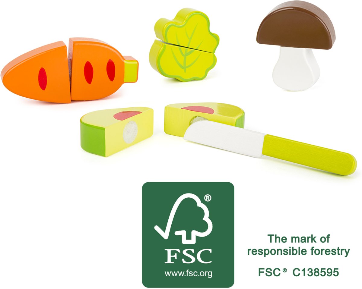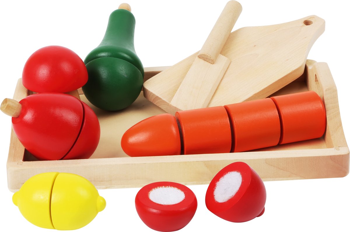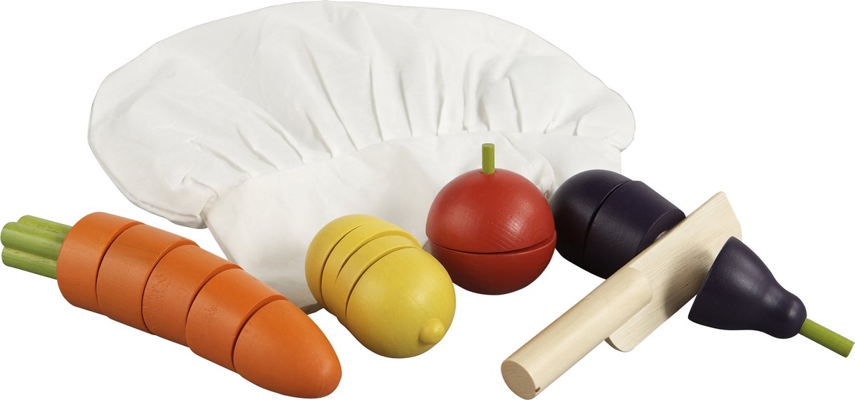 – Educatief Houtenspeelgoed – Snijgroente set met mes en schort - +18 maanden