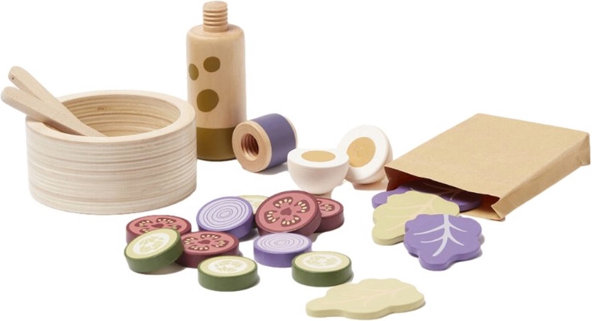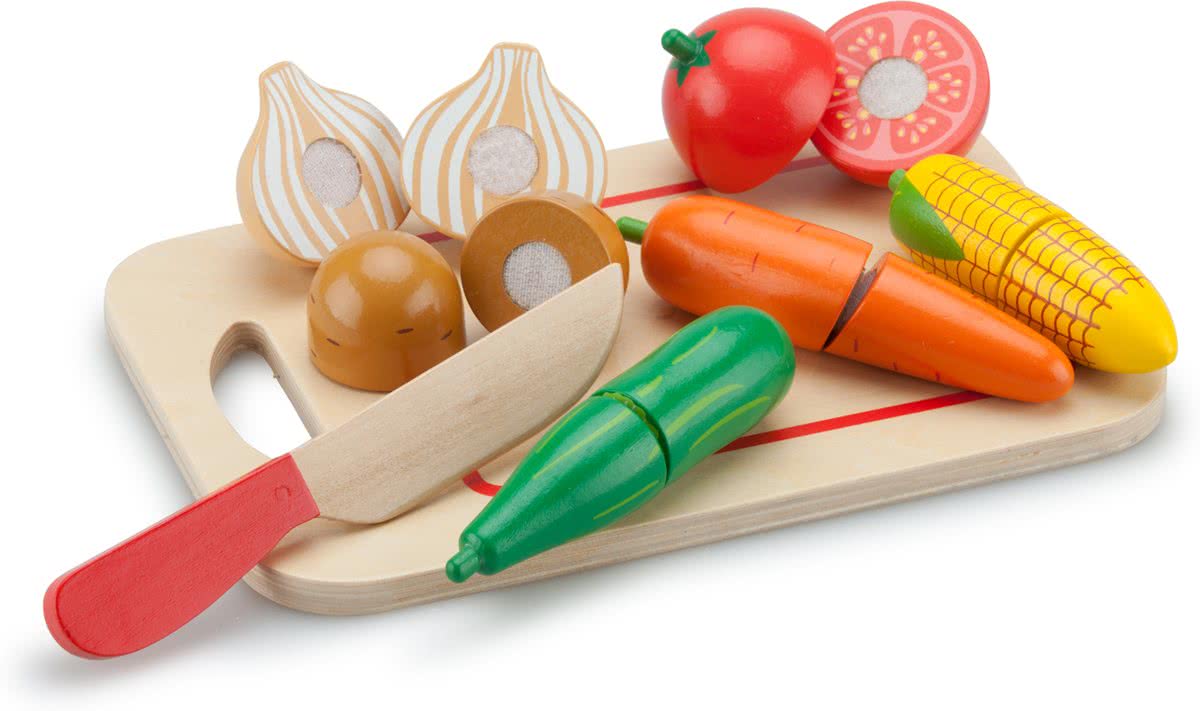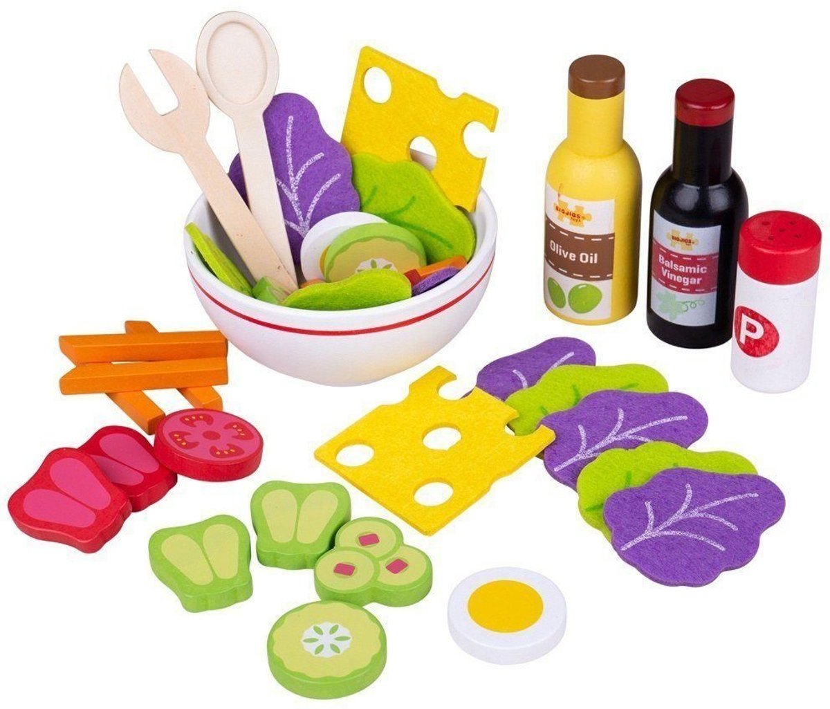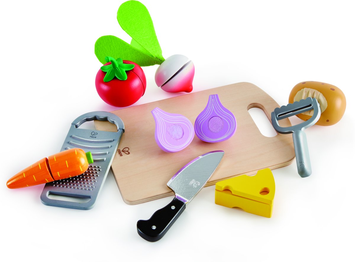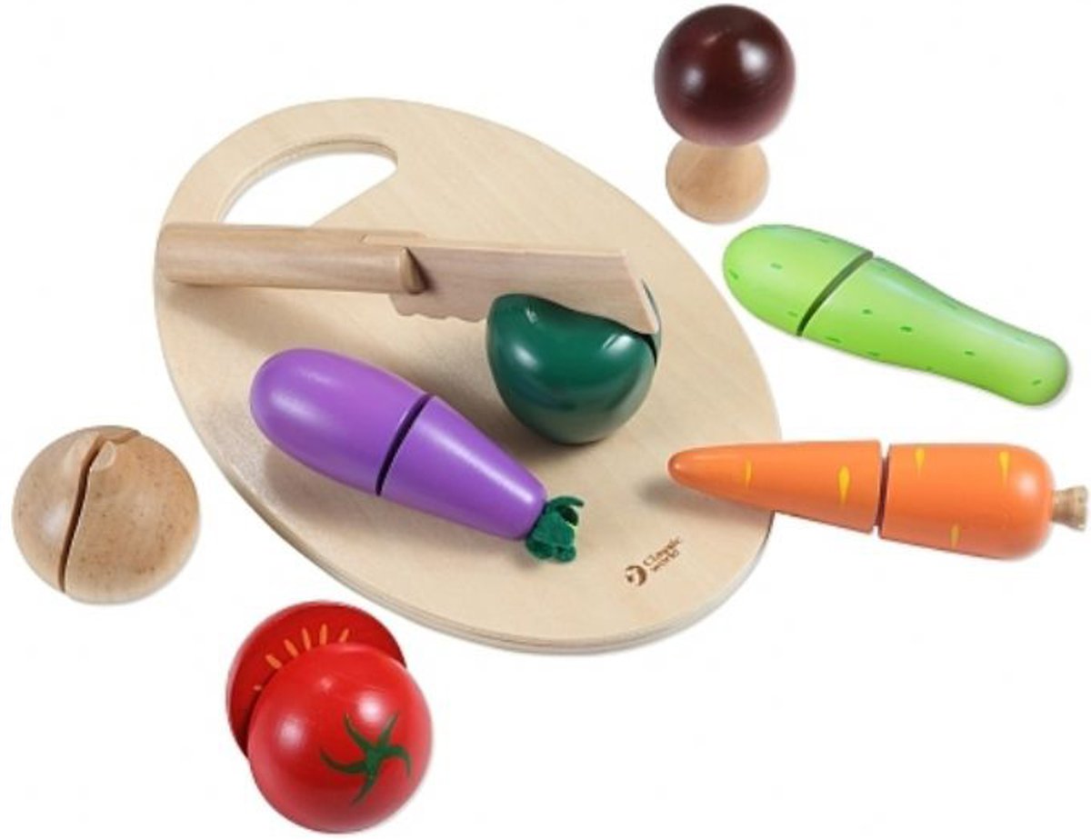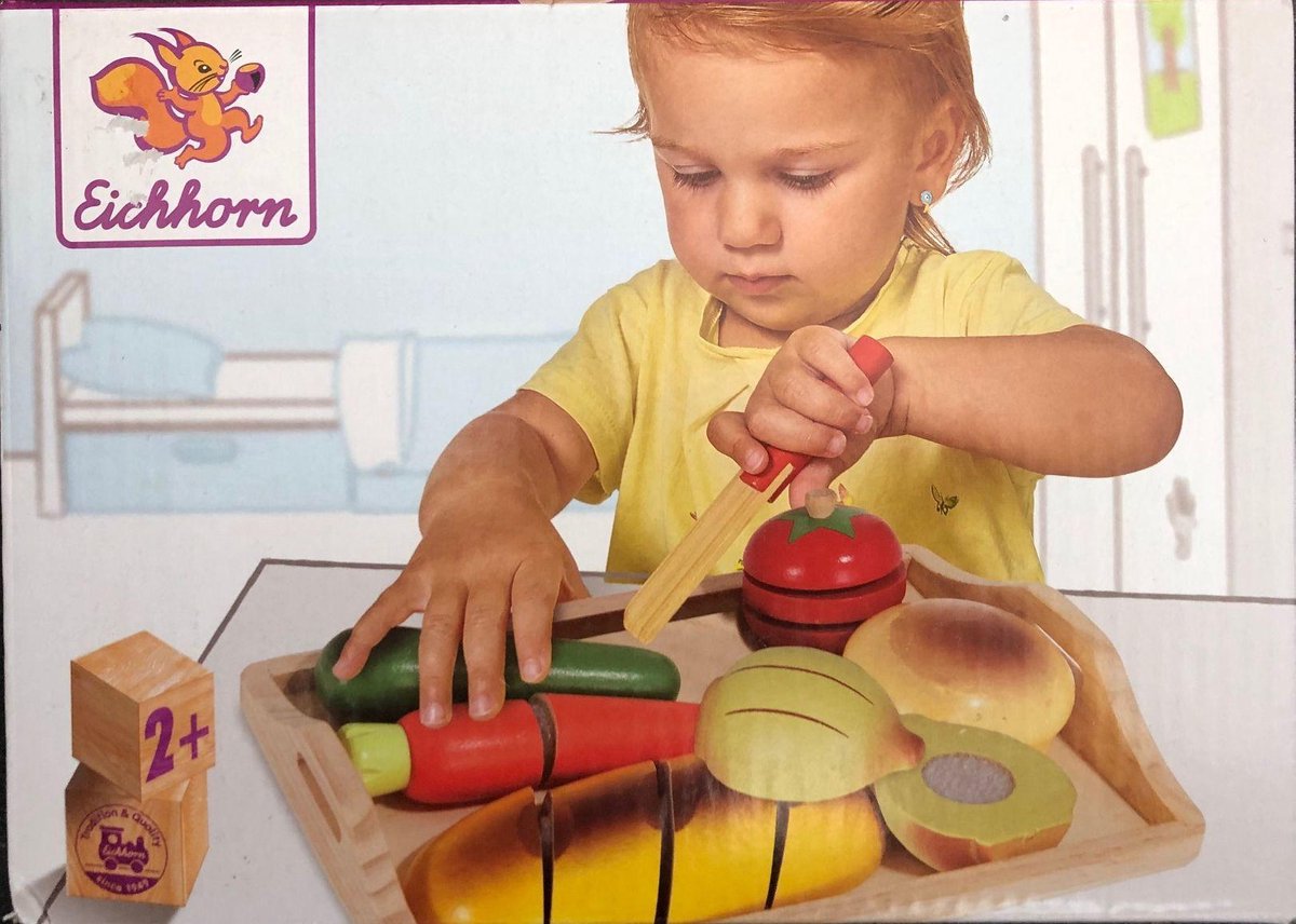 – Educatief Houtenspeelgoed – Snijgroente set met mes en schort - +18 maanden
