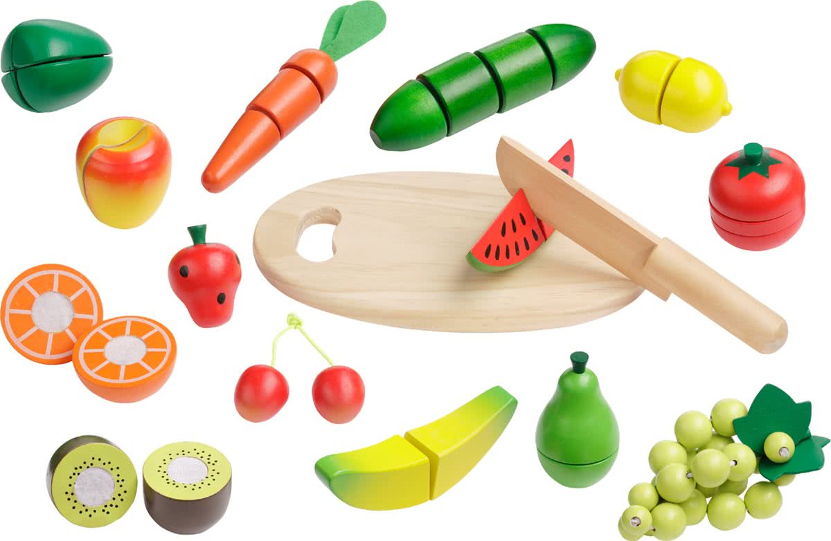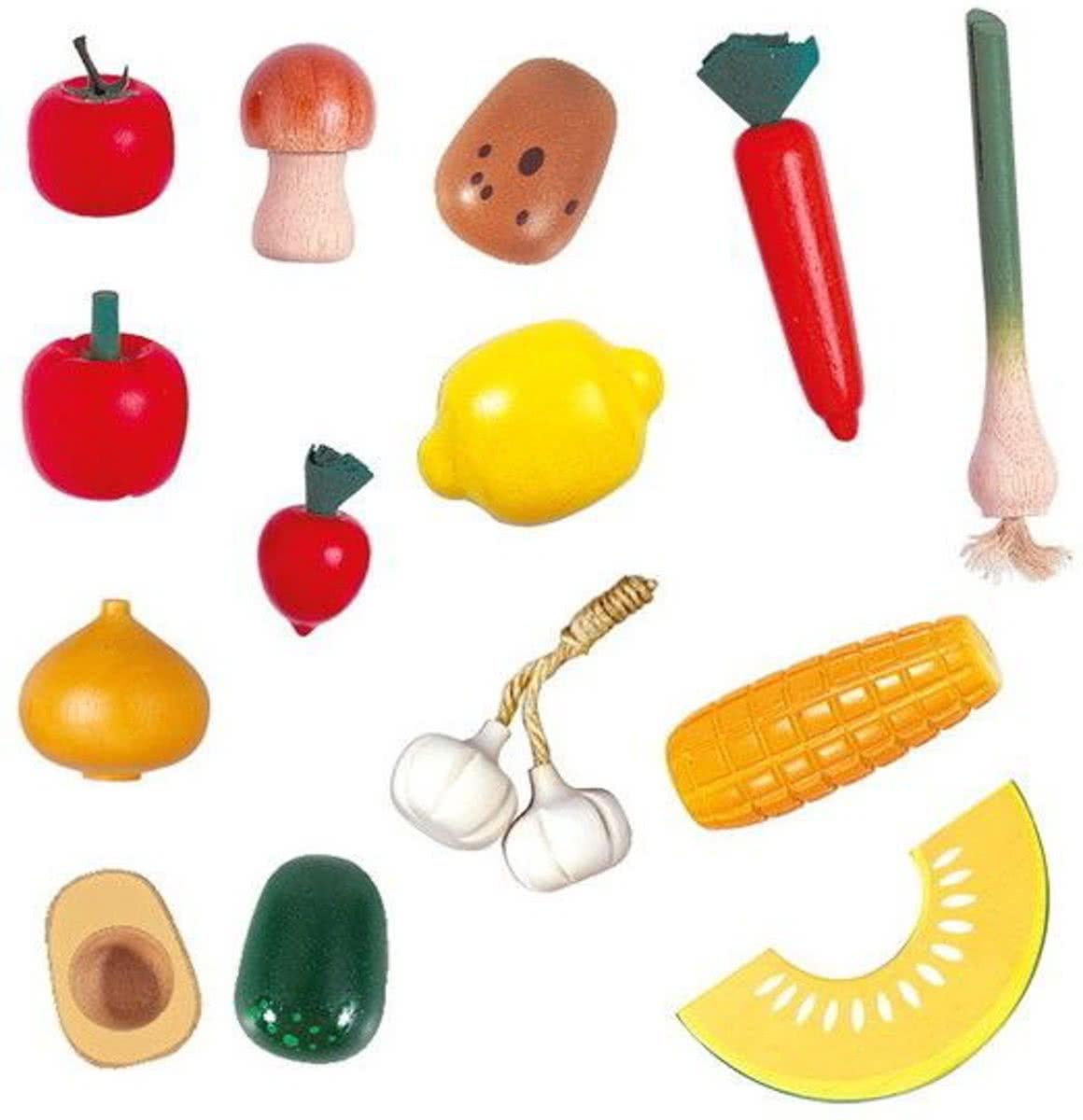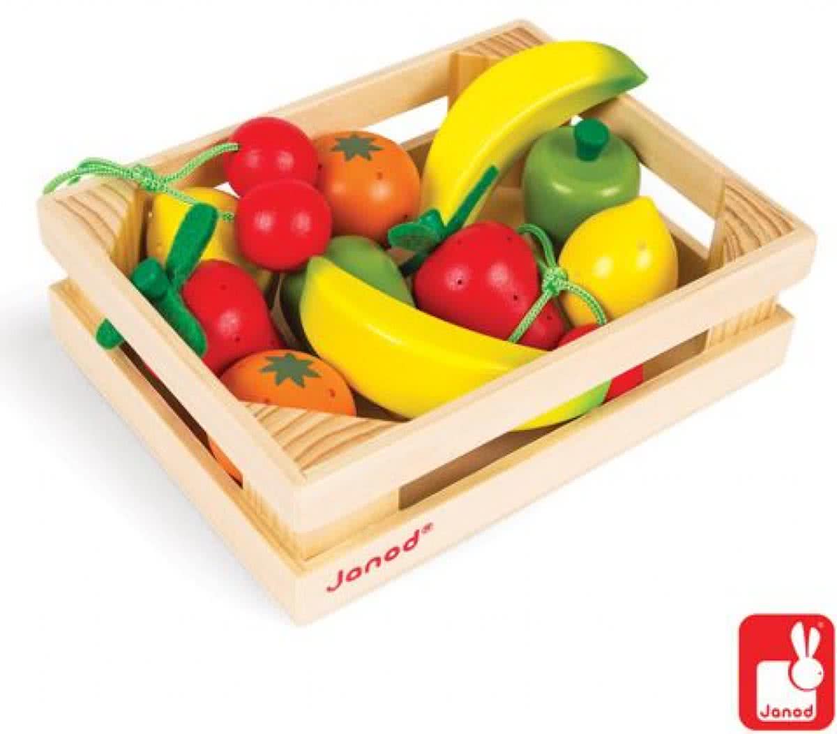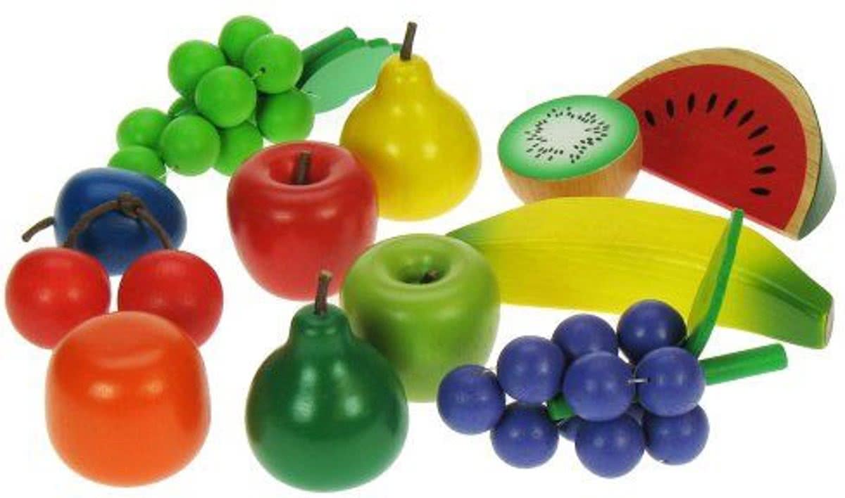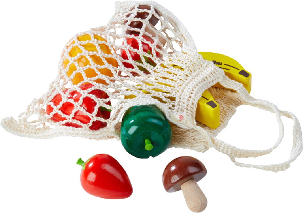 Houten Speelgoed Snijset "Fruit en Groenten" met Snijplank, Mes, Net en Doos 13-delig 4891
