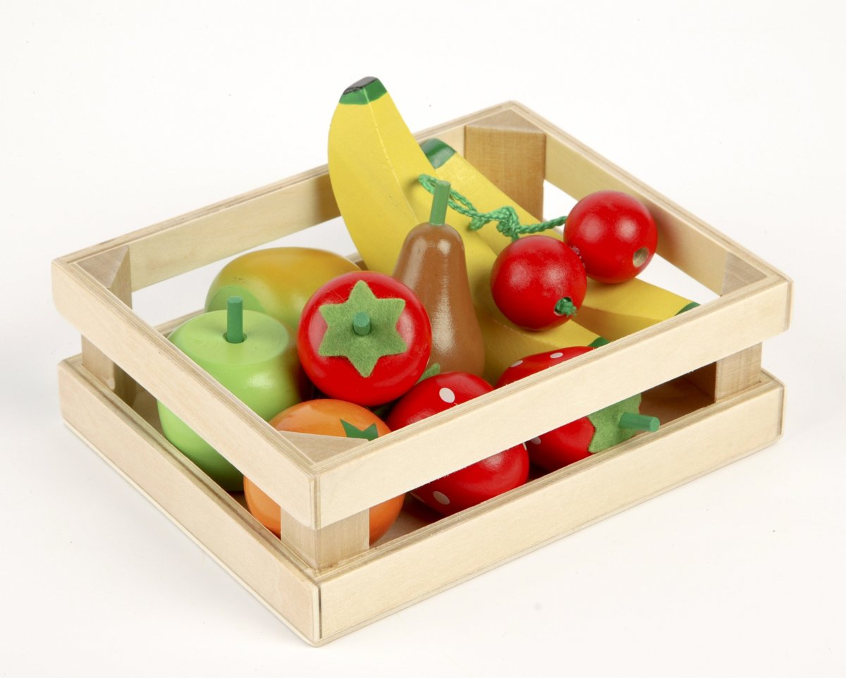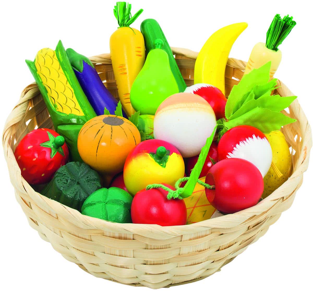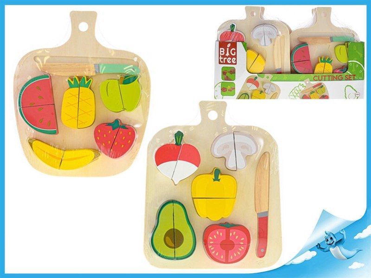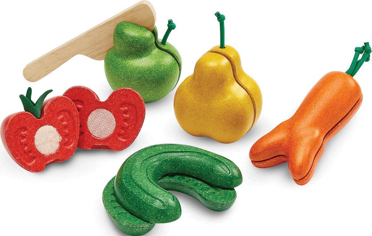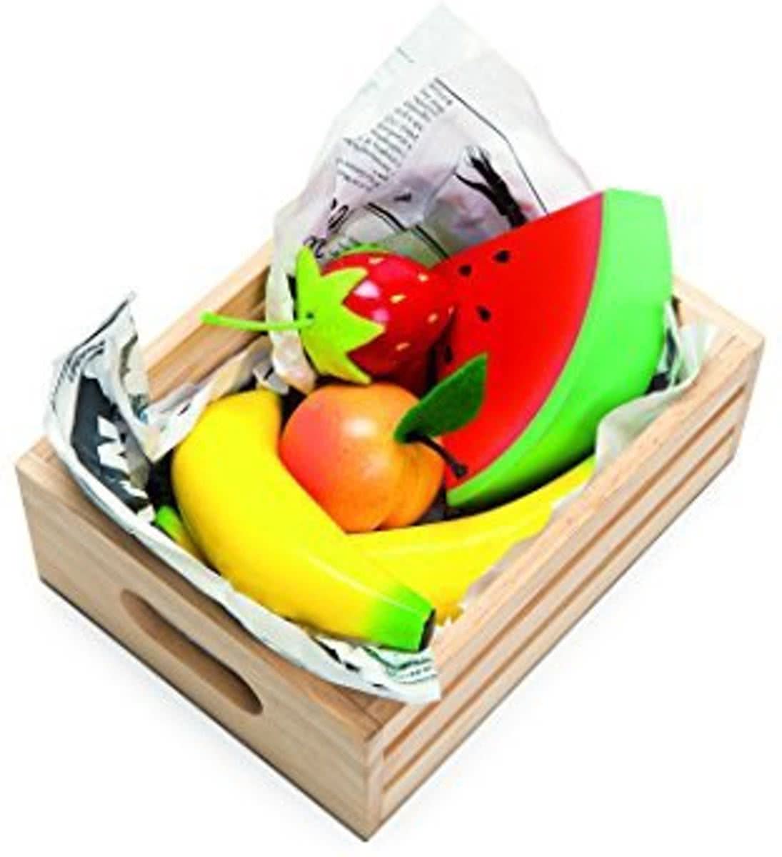Houten Speelgoed Snijset "Fruit en Groenten" met Snijplank, Mes, Net en Doos 13-delig 4891