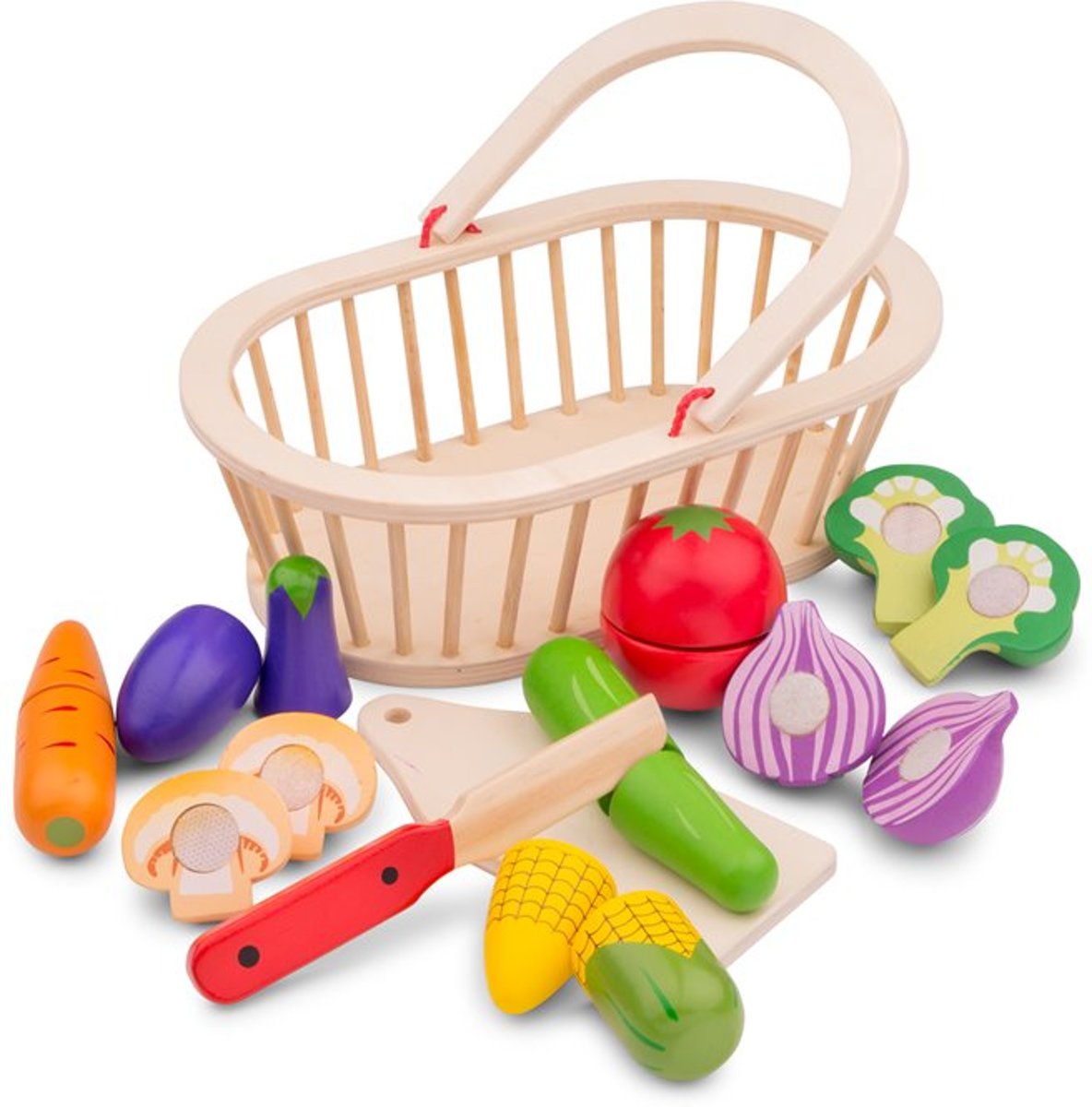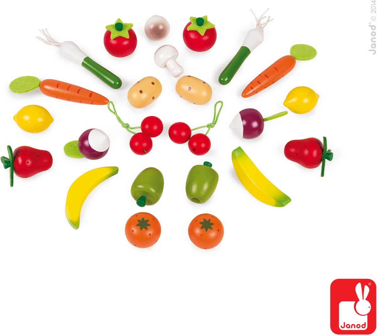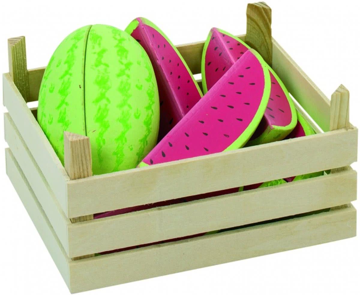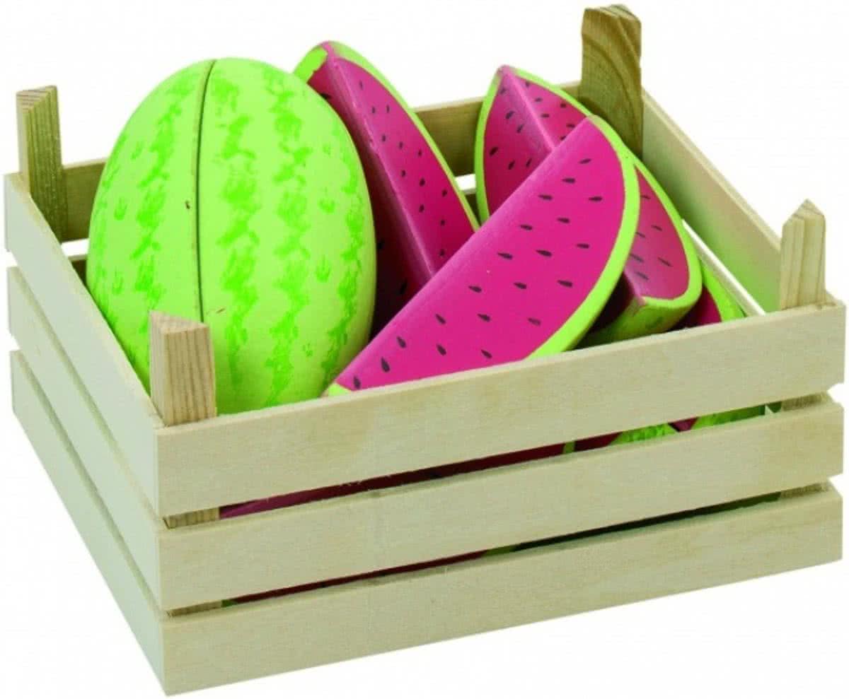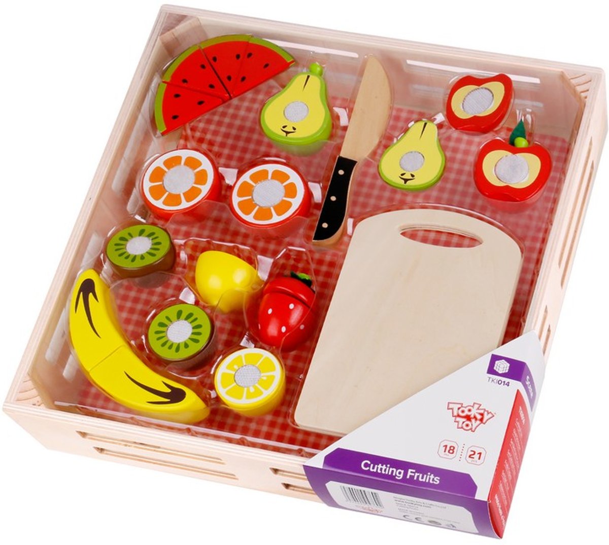 Houten Speelgoed Snijset "Fruit en Groenten" met Snijplank, Mes, Net en Doos 13-delig 4891
