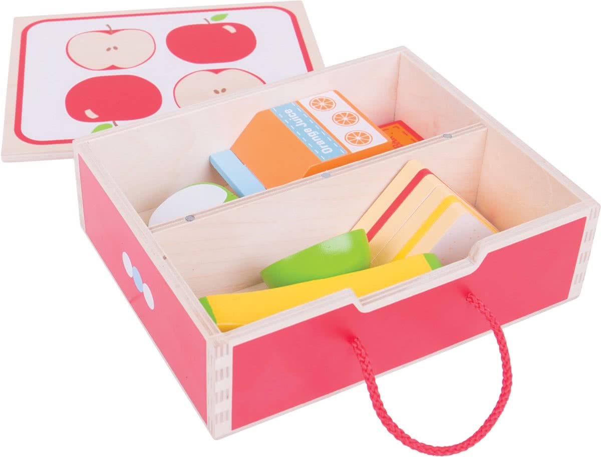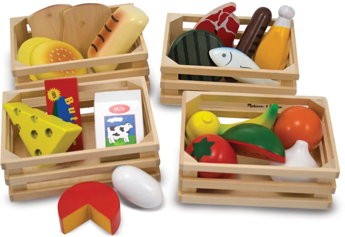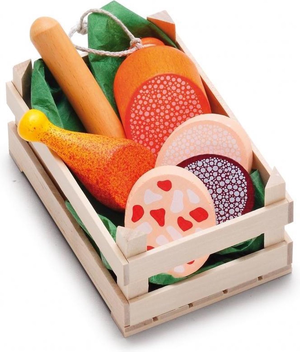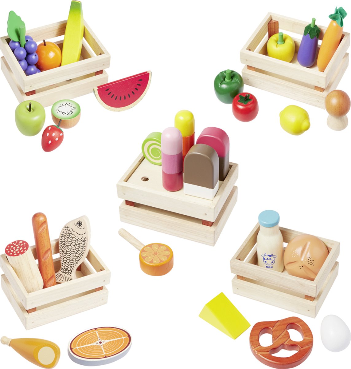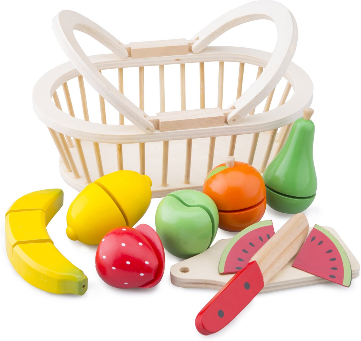 Houten Speelgoed Snijset "Fruit en Groenten" met Snijplank, Mes, Net en Doos 13-delig 4891