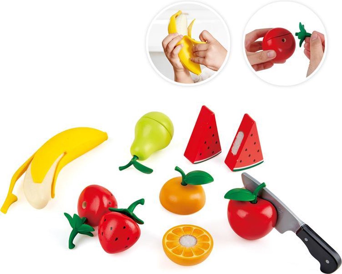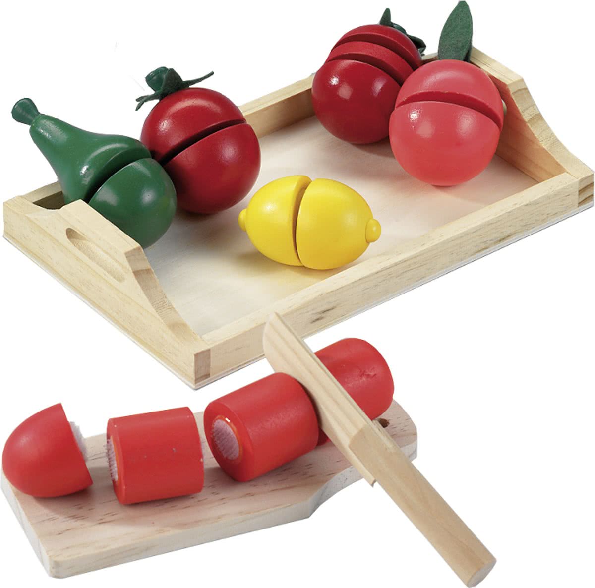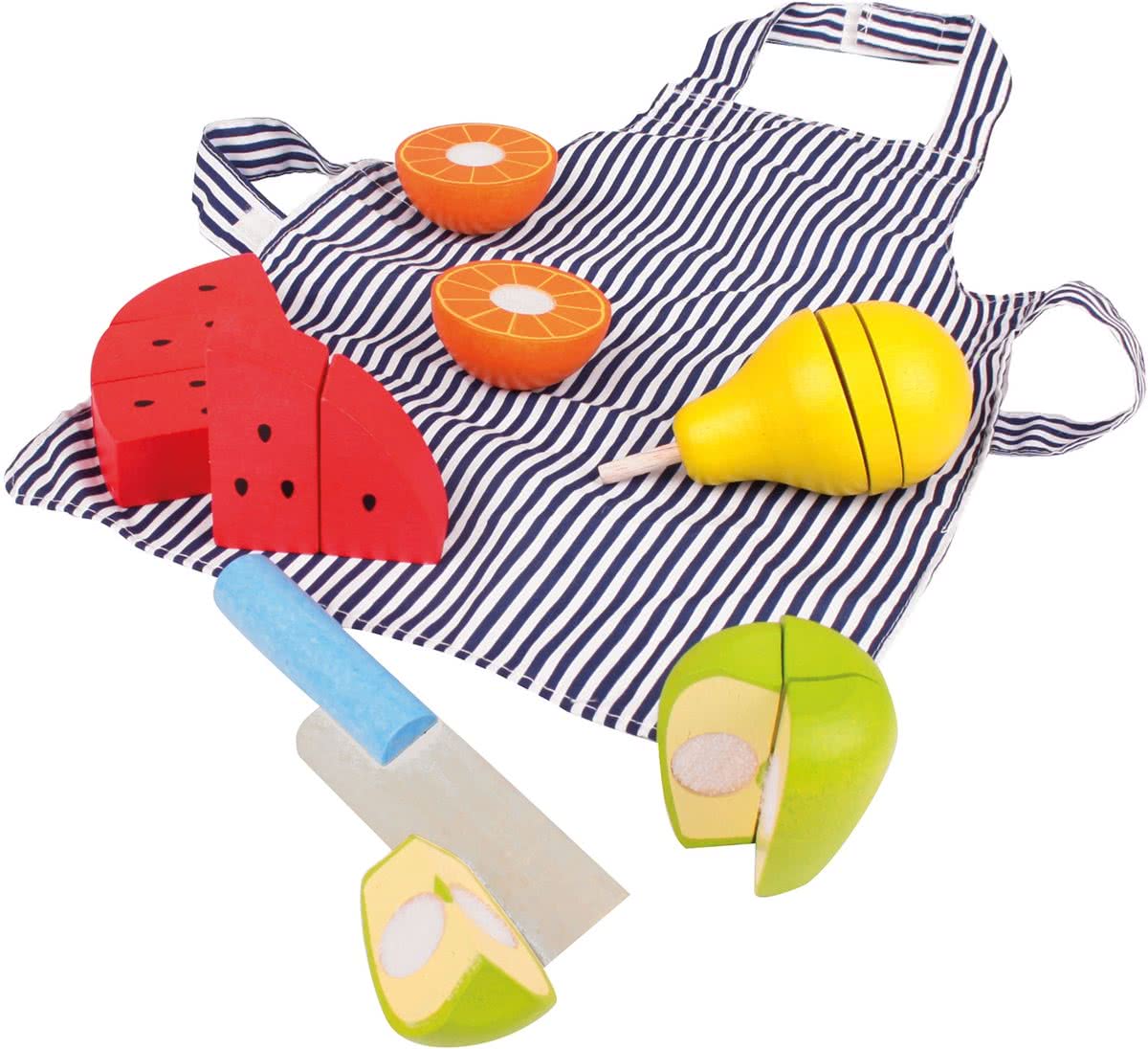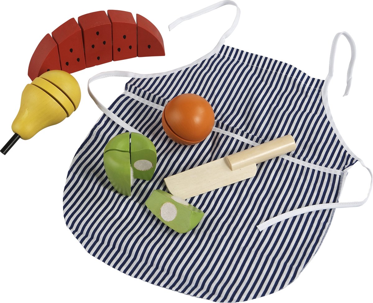 – Educatief Houtenspeelgoed – Snijfruit set met mes en schort - +18 maanden