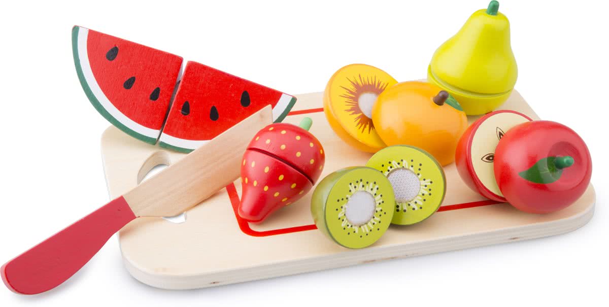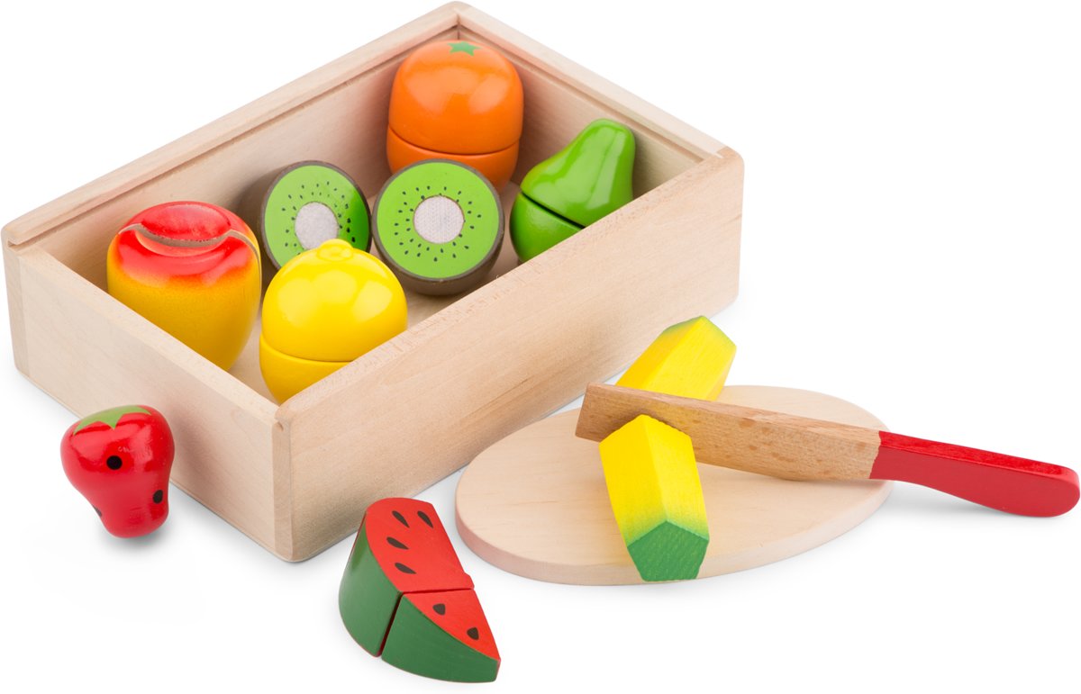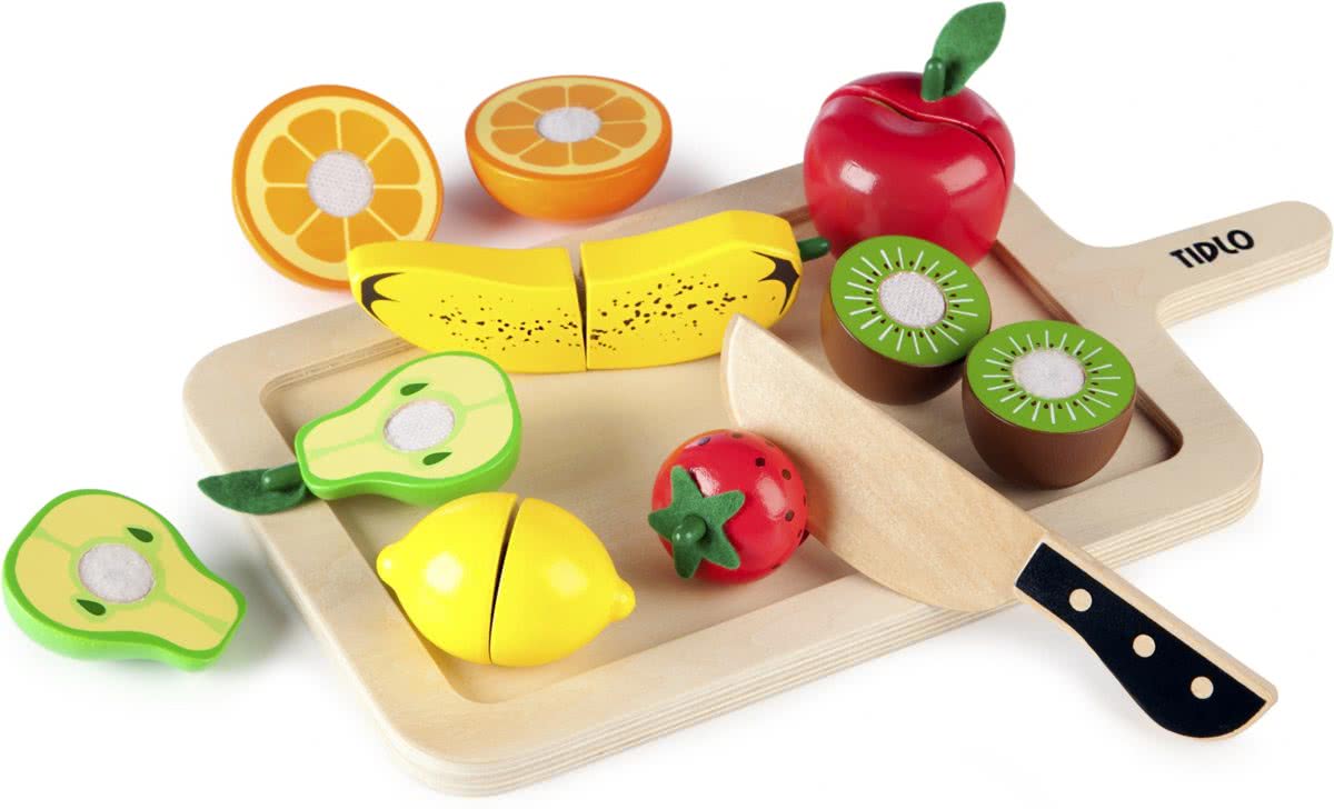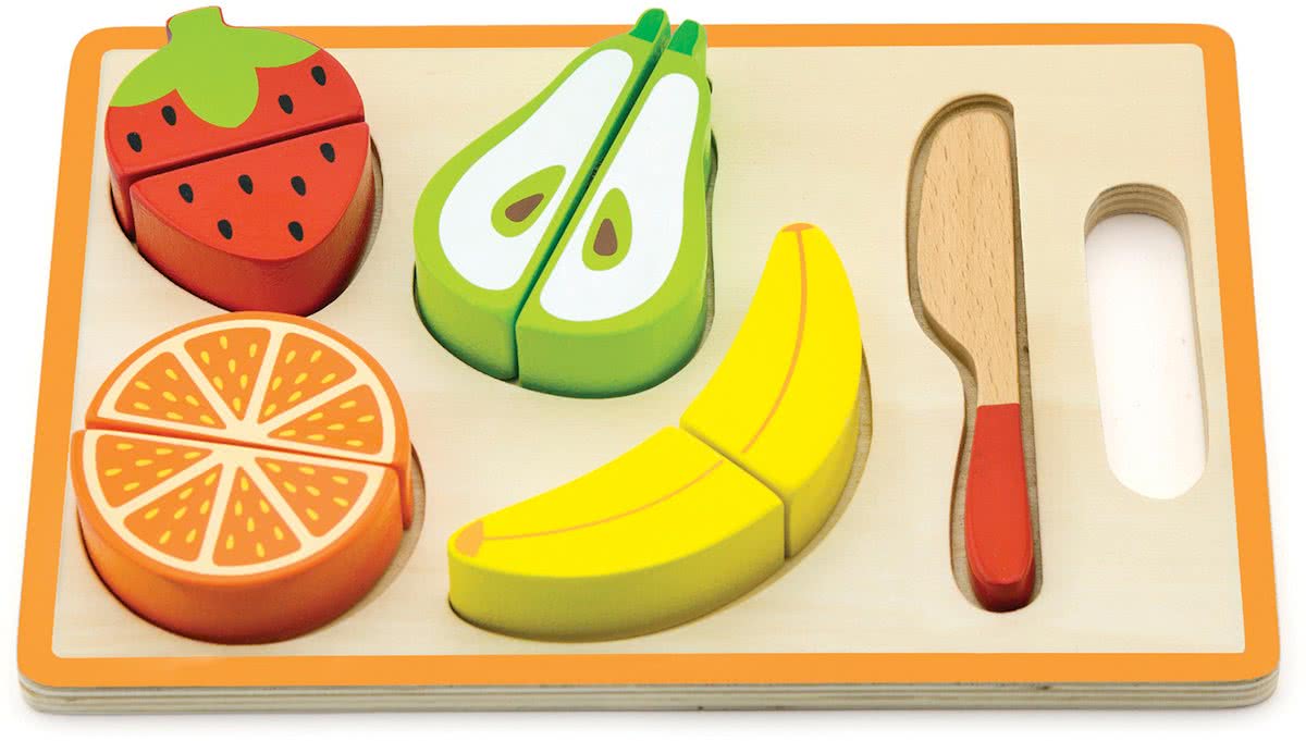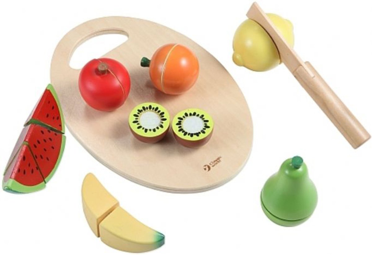 – Educatief Houtenspeelgoed – Snijfruit set met mes en schort - +18 maanden
