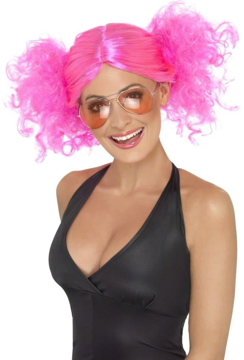 "Fluo roze pruik met krullen volwassenen - - One size"