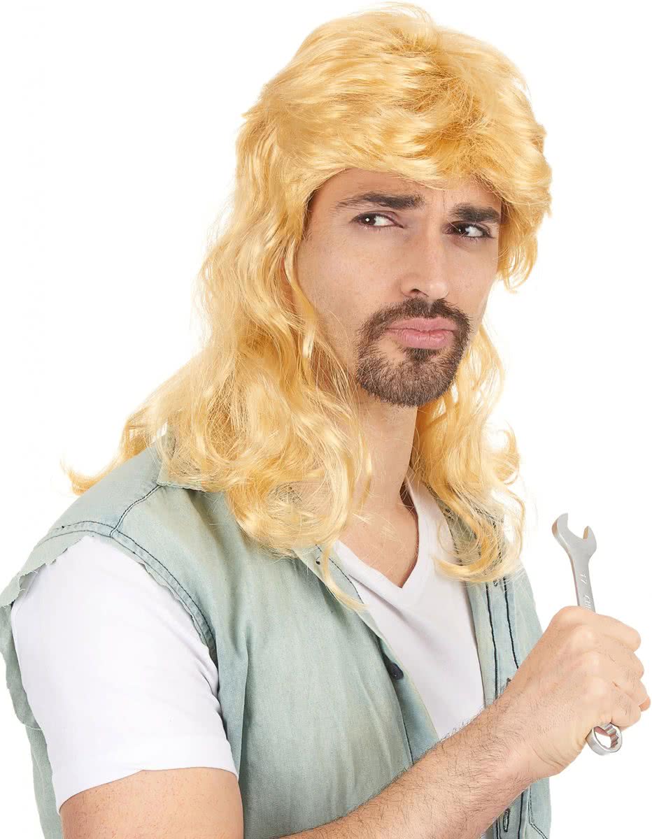 Blonde rocksterpruik voor mannen - Pruik met Matje