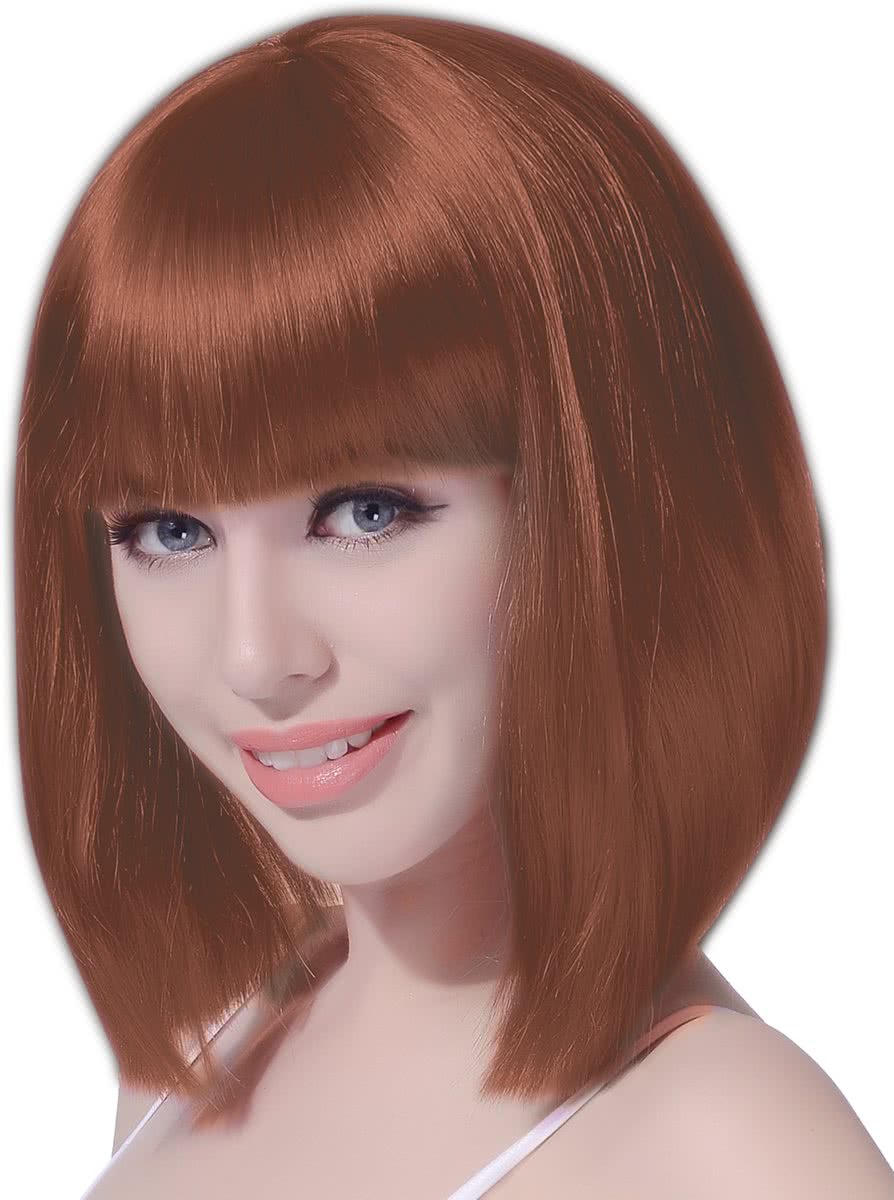Lange kastanjebruine pruik met pony voor vrouwen -