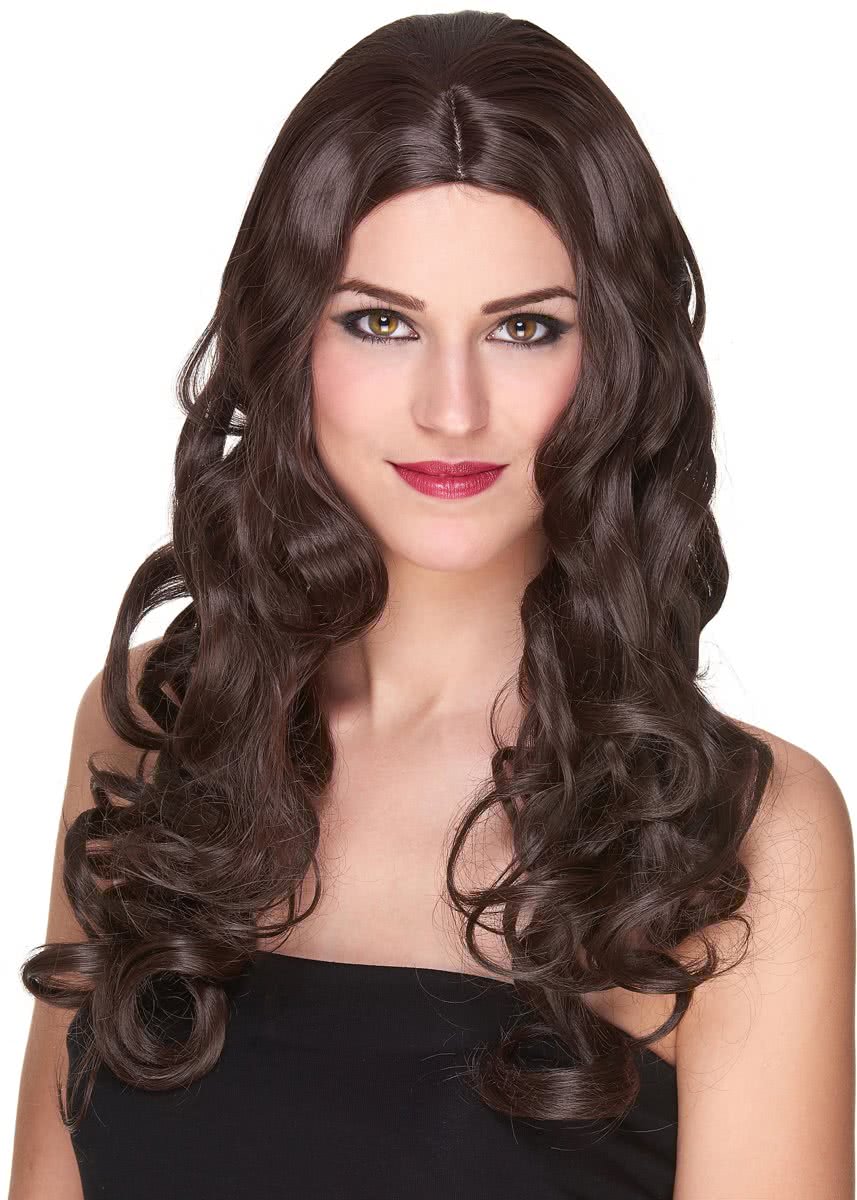"Luxe lange donkerbruine pruik met golvend haar - - One size"