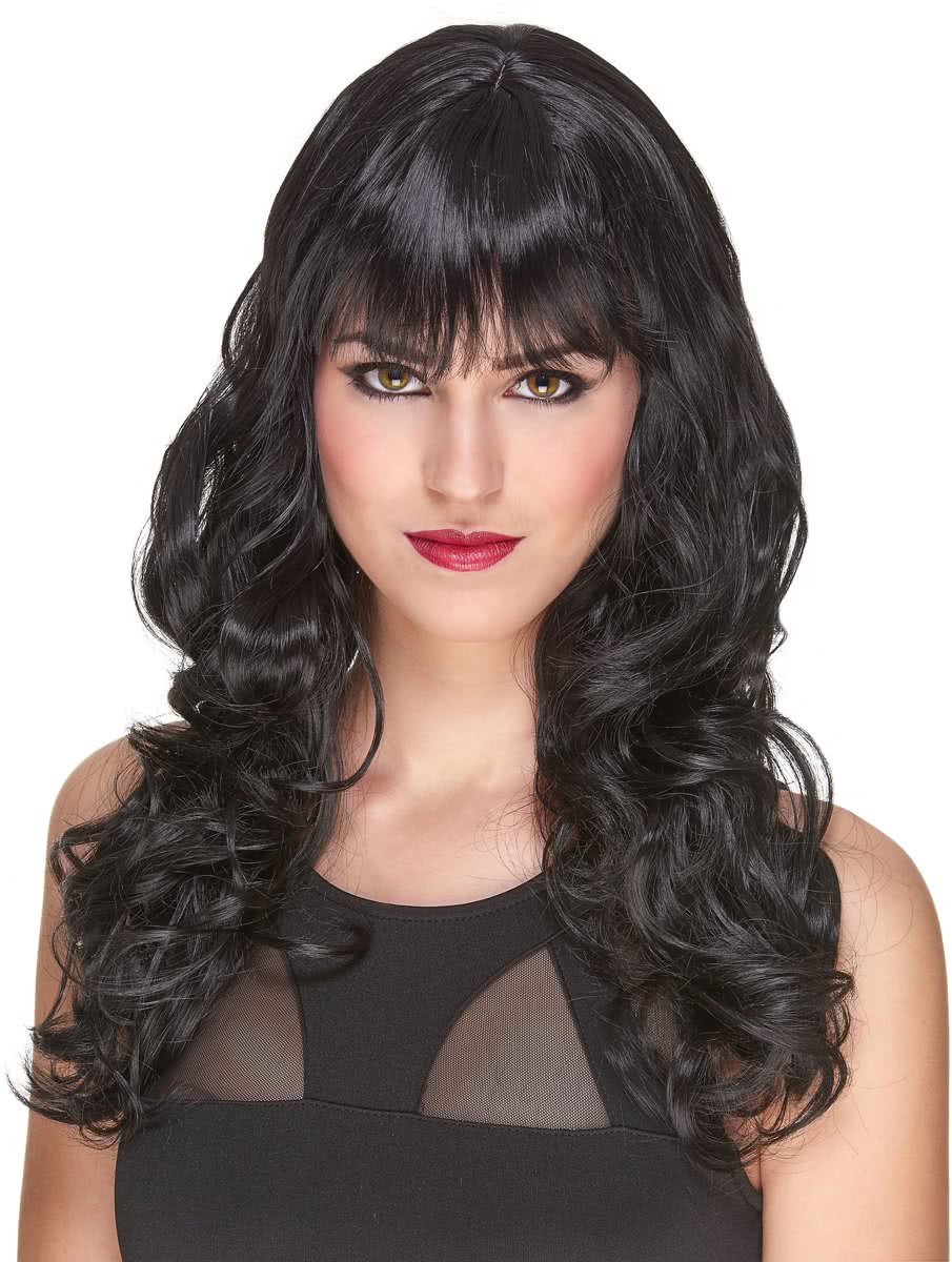 "Luxe zwarte gekrulde pruik met pony - 221 g - - One size"