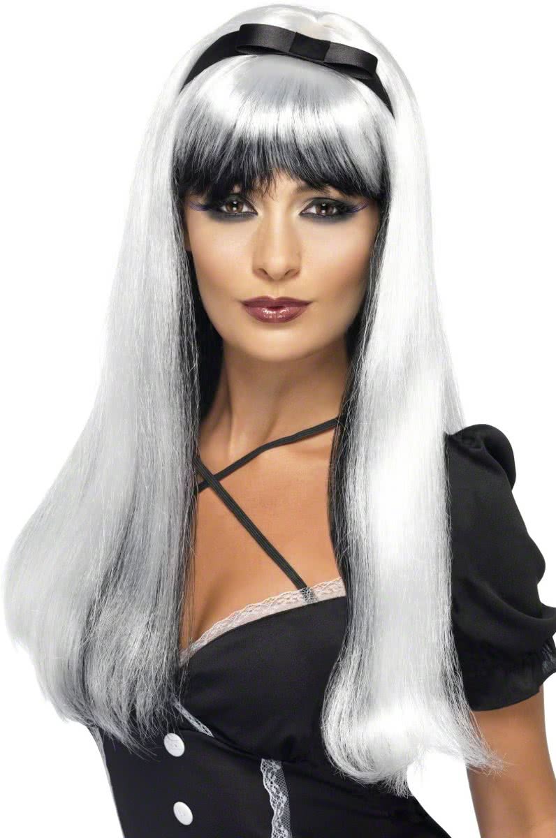 Zwart-witte Devil pruik voor vrouwen - - One size