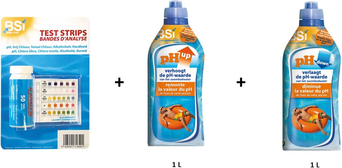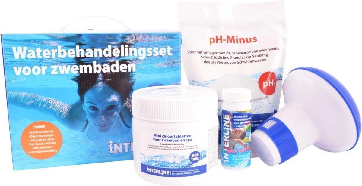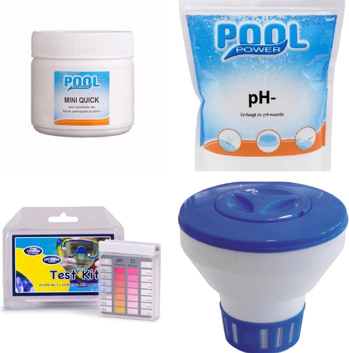 Zwembad onderhoud reiniging Starterset mini - pH- - Mini Quick chloor - Test Kit - Chloordrijver