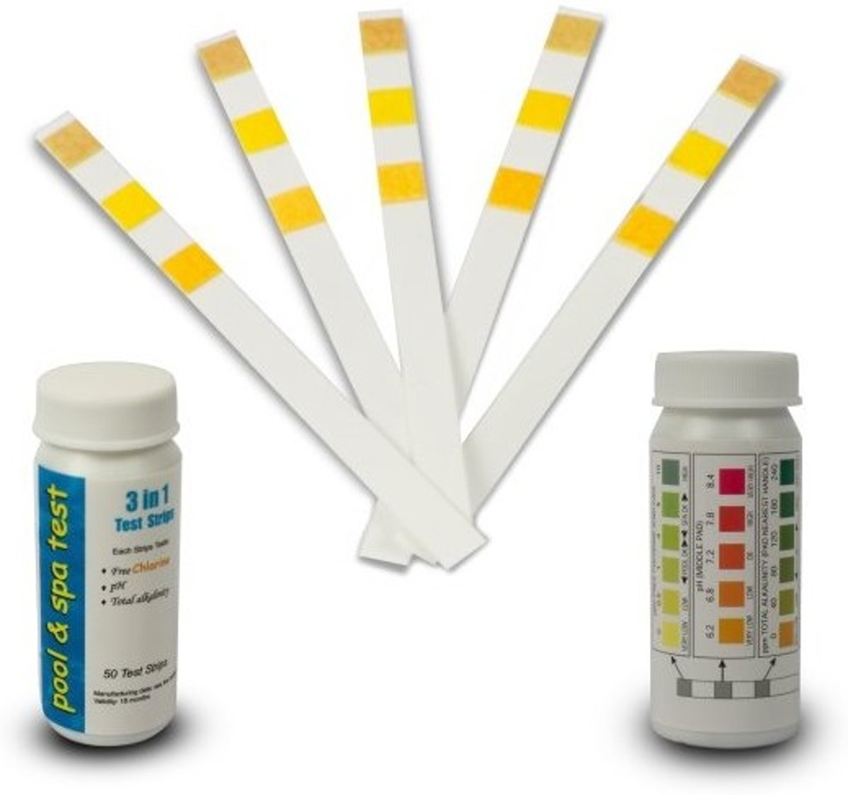 Zwembad test Chloor, alkaliniteit en PH |3 in 1| 100 strips